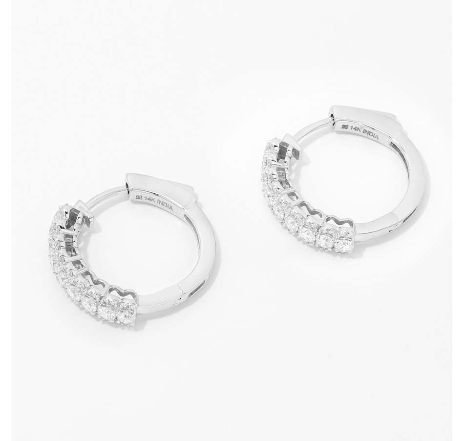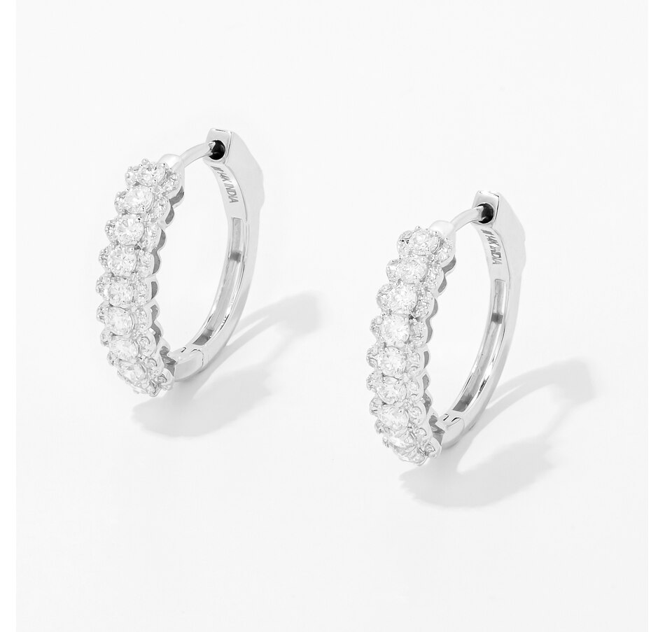 14K White Gold 1.00 ctw Diamond Hoop Earrings
