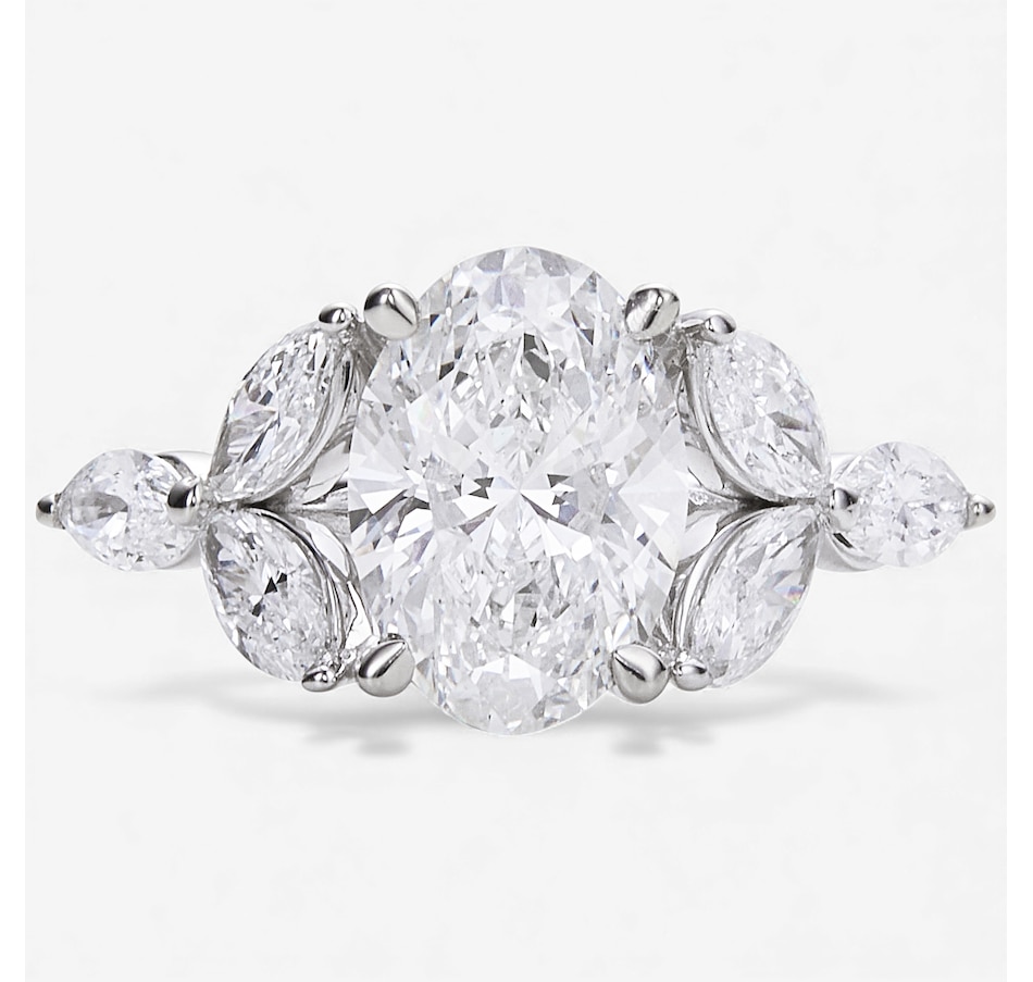 14K White Gold 3.40 ctw Marquise and Oval Diamond Ring