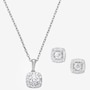 Sterling Silver 0.90 ctw Diamond Pendant with Chain and Earring Set