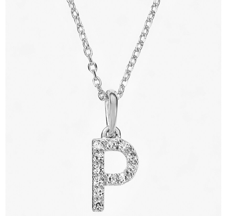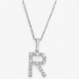 Sterling Silver Rhodium Plate 0.10ctw Diamond Alphabet Pendant with Chain