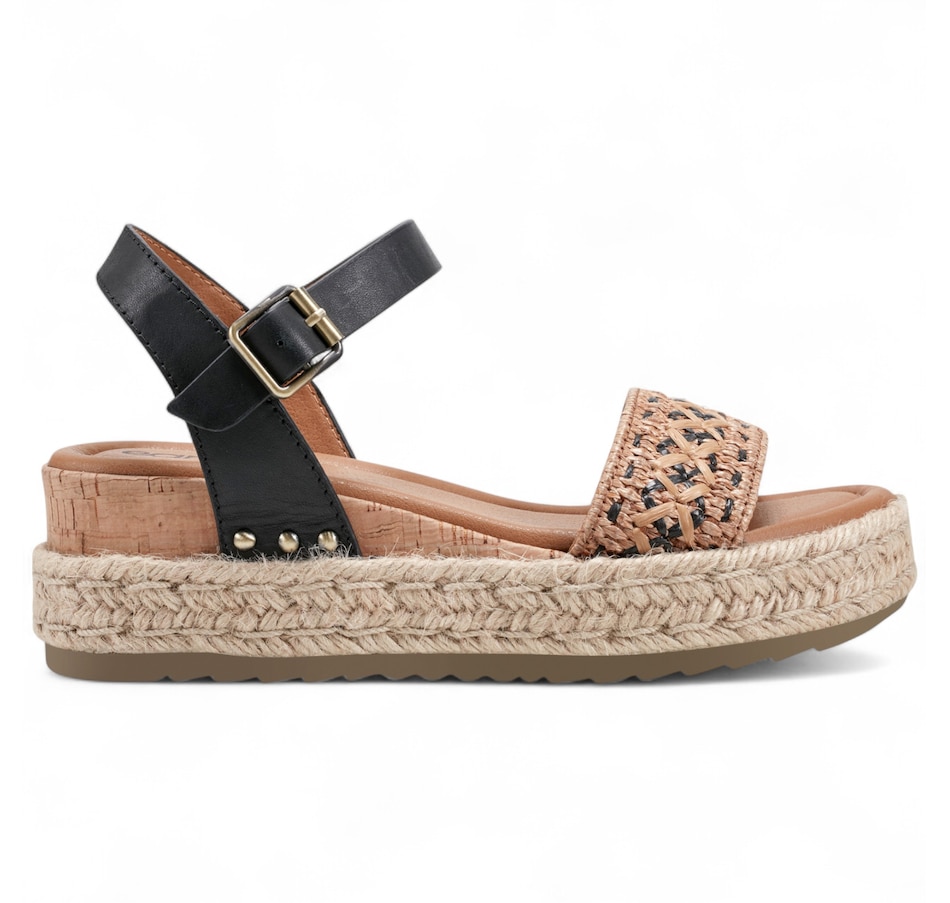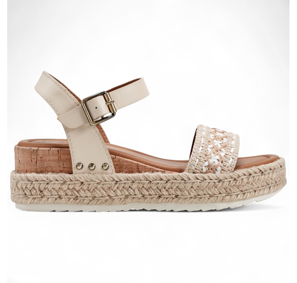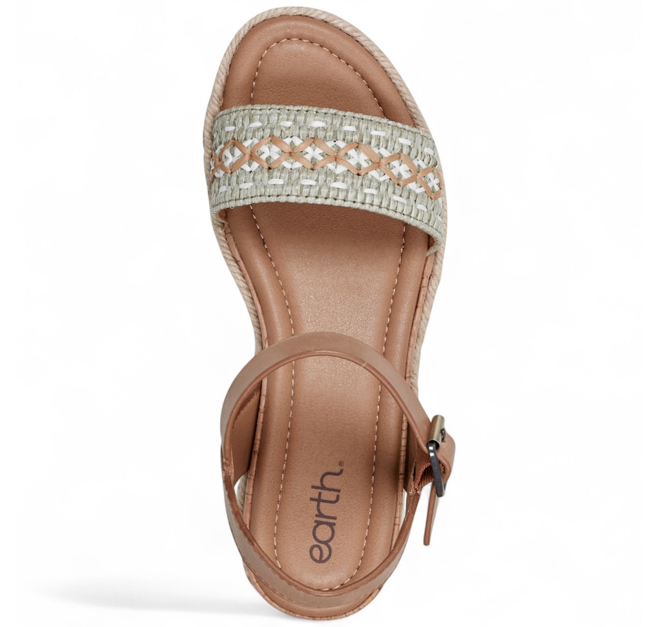 Made with exceptional comfort, a responsible design, and effortless style, the Earth Collins is a stylish platform wedge with a cushioned sock and partially recycled lining. Plus, it offers an adjustable ankle strap and a durable recycled rubber outsole too.
