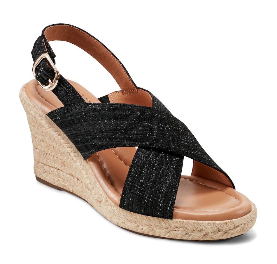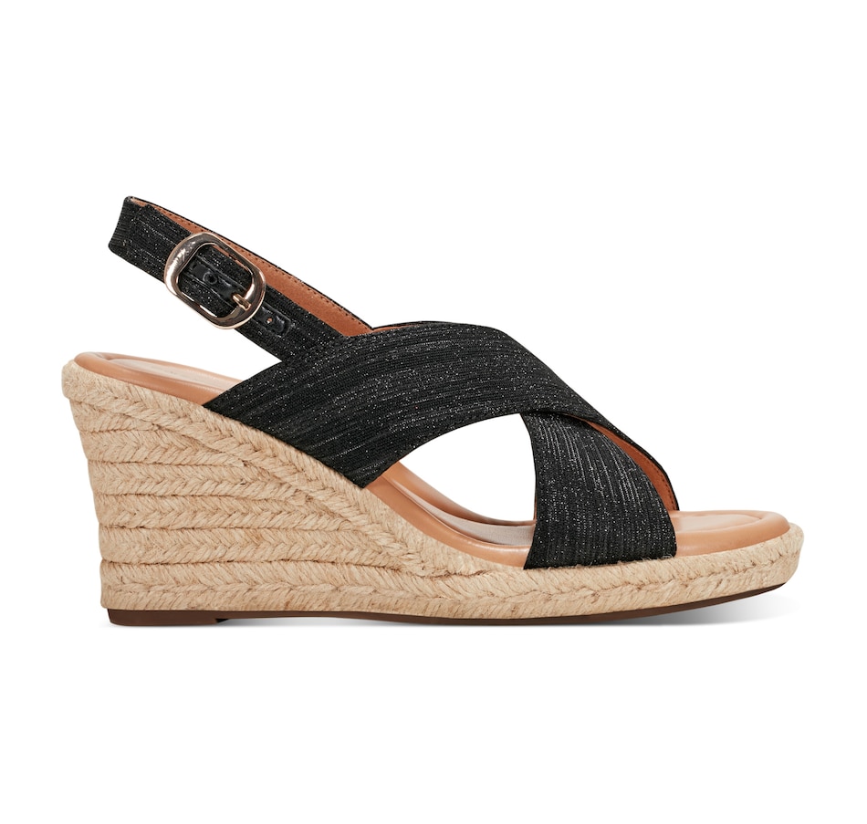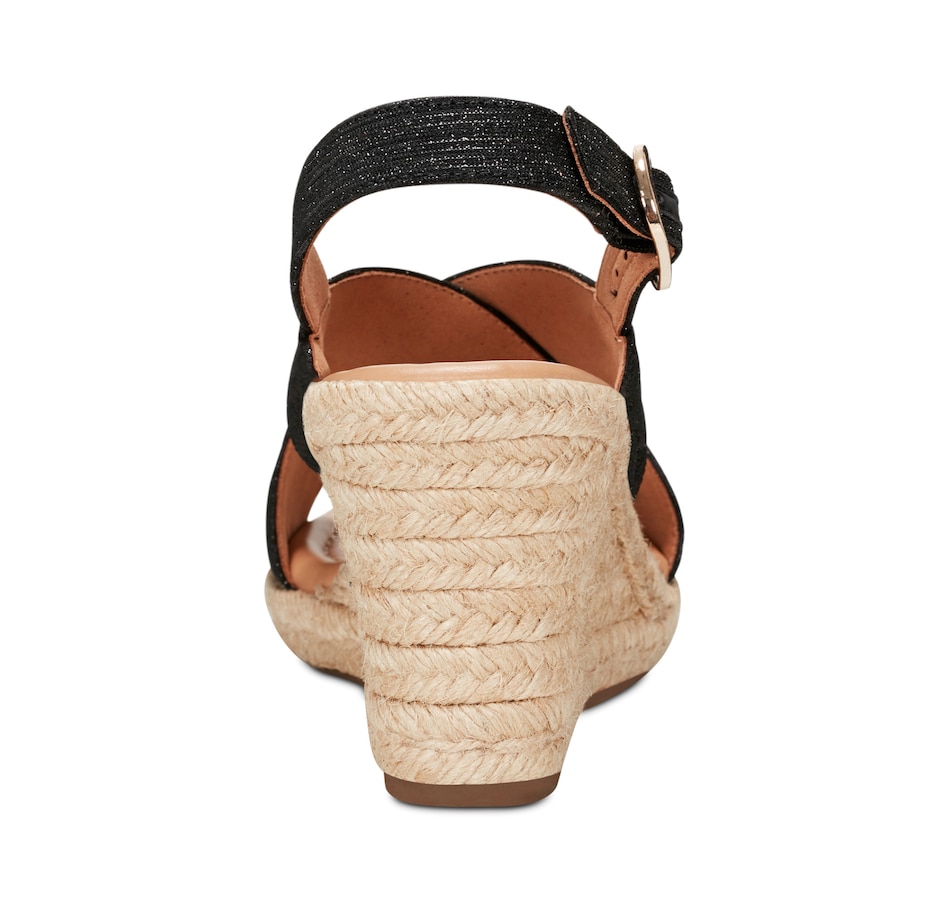 • Adjustable buckle ankle strap with espadrille wedge, flexible soles