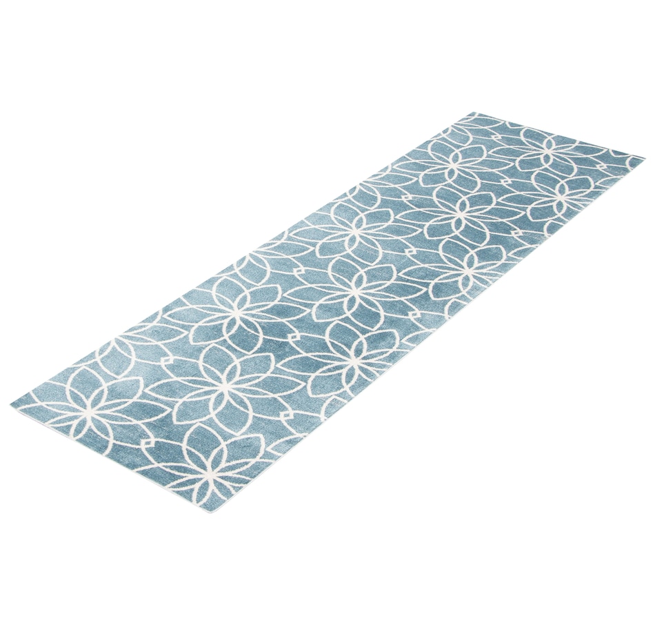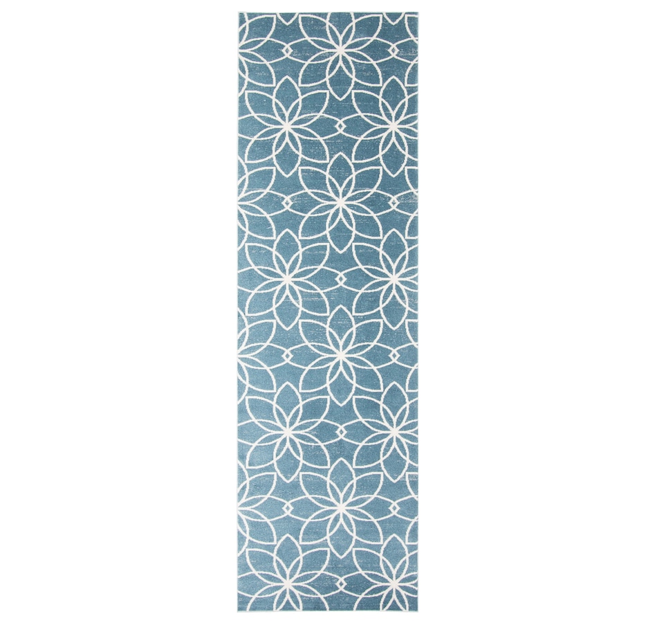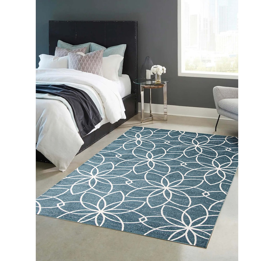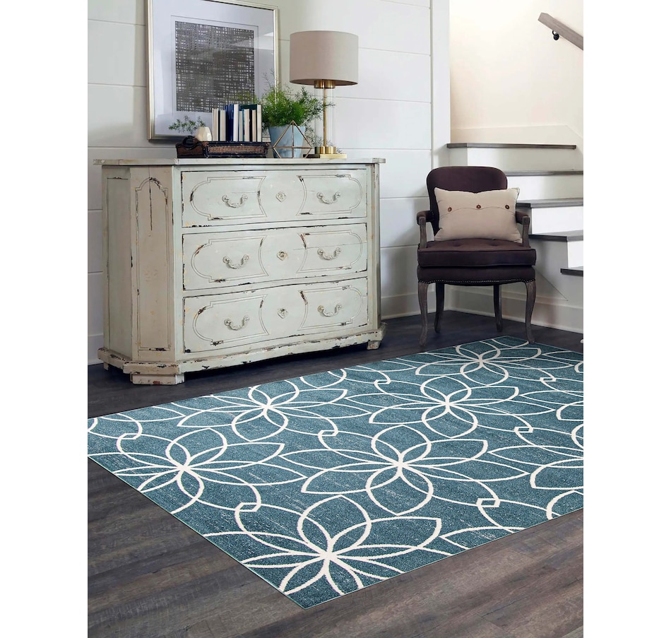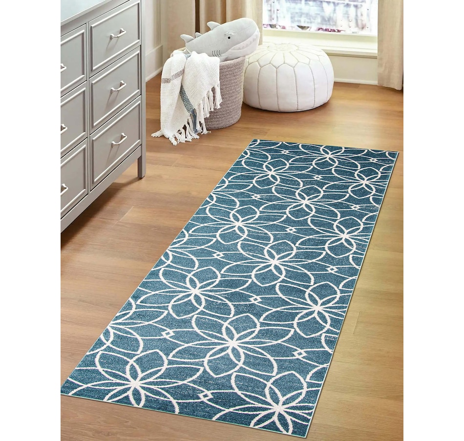 The floral Aqua machine washable area rug offers an intricate printed texture on a soft-underfoot polyester base. The hardworking low pile reduces dirt and allergens trapped in your home, making this a handsome and helpful design choice. Durable in construction, the low, non-shed, even pile of this rug makes for easy cleaning by vacuuming with the beater bar removed. The polyester fibre is inherently stain and fade-resistant, and maintaining its colour and overall beauty for extended periods. Created in Turkey, these power-loomed designs are digitally printed using cutting-edge technology that allows for detail that can't be replicated by hand. Okeo-Tex® certified to verify the materials in this rug contain any harmful substances. It's ideal for your living room, dining room, or bedroom and high traffic areas.
