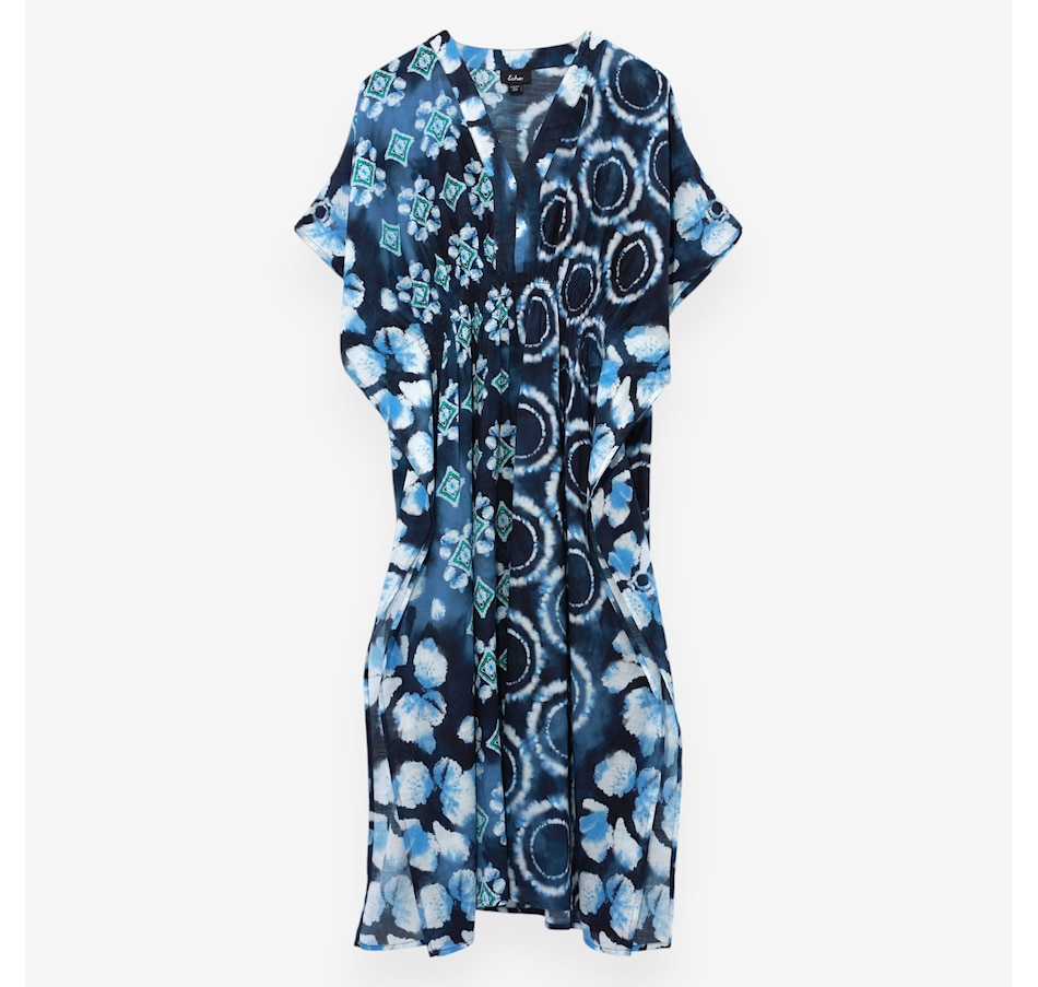 From the beach to the street, this versatile, batik maxi caftan from Echo is crafted from textured cotton.
