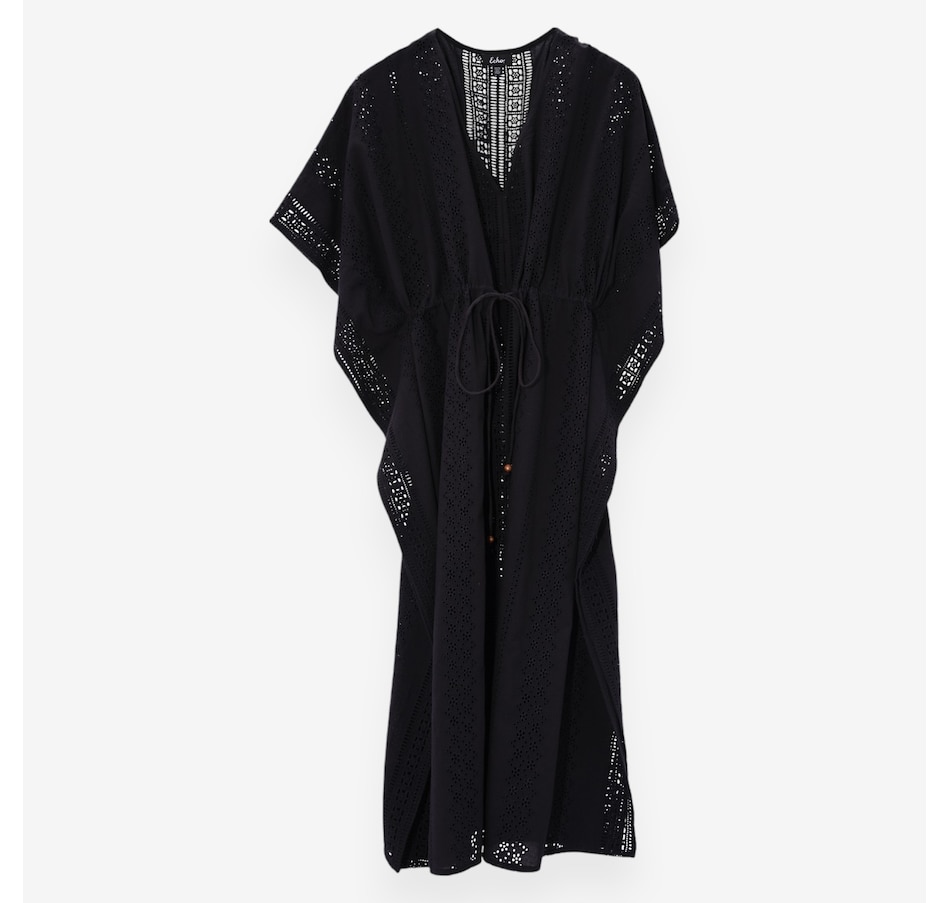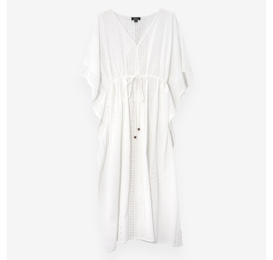 This maxi caftan is crafted from the finest pure cotton and features an eyelet pattern. Finishing with a beaded tie at the front, it's as fun as it is stylish.