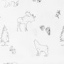 • Design features a hand-drawn dark-grey outlines a bear, moose, wolf, animal tracks and a tree on a white ground