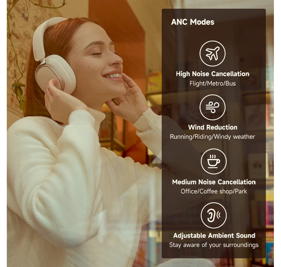 - Upgraded Hybrid Active Noise Cancellation: Block out up to -45dB of ambient noise with multiple ANC modes-high, medium, wind reduction and ambient sound-so you can tailor your listening experience to any setting.