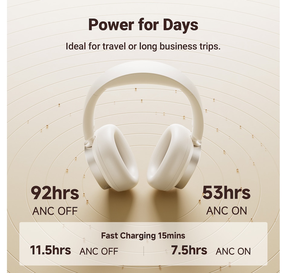 - 92H Battery & Fast Charging: Listen non-stop for up to 92 hours on a single charge (ANC off) or 53 hours with ANC on. A 15-minute fast charge provides up to 11.5 hours of playback (ANC off), perfect for busy days and long trips.