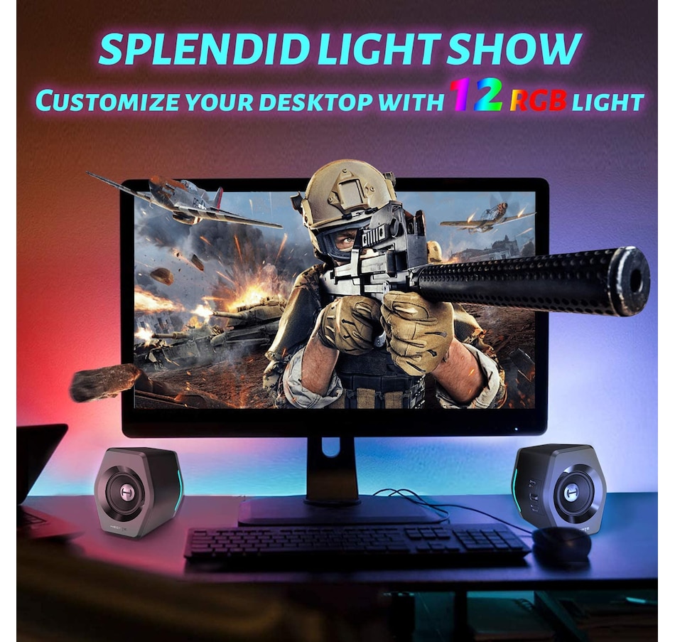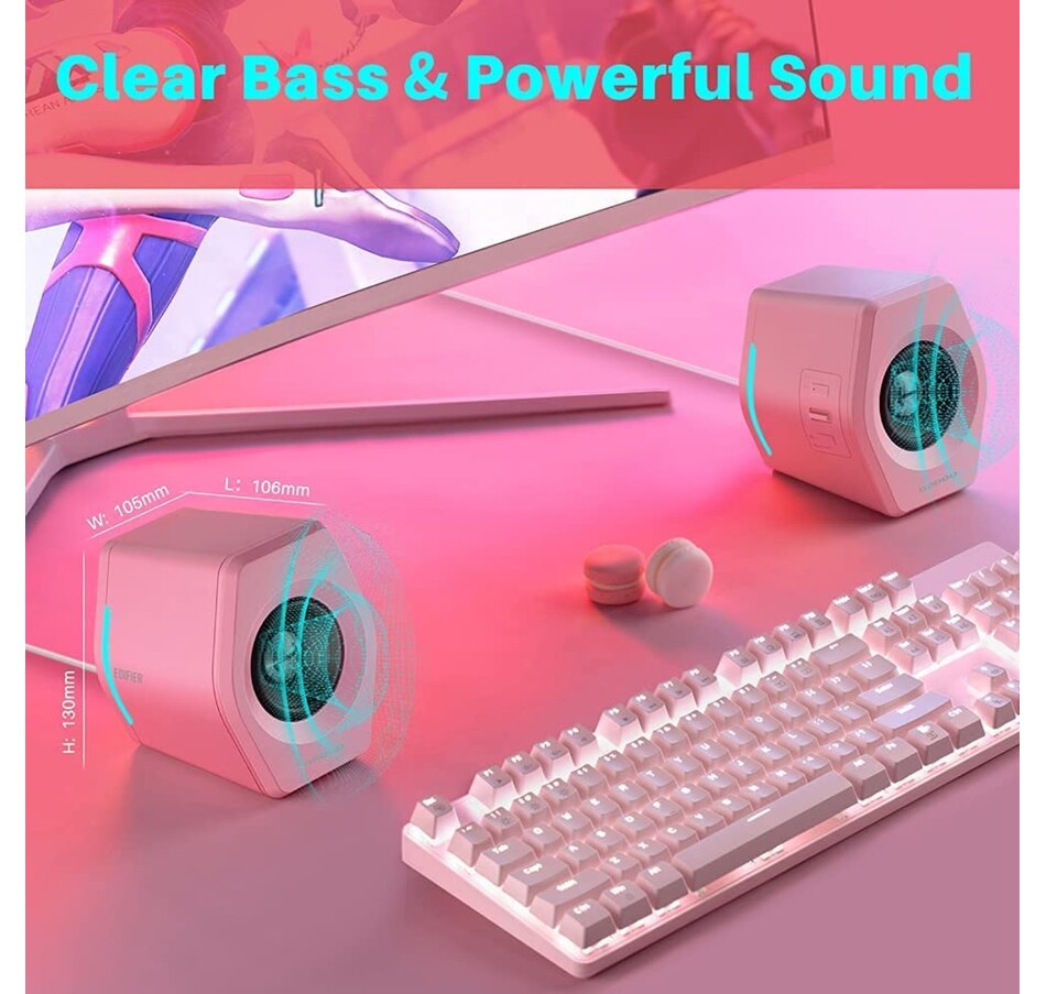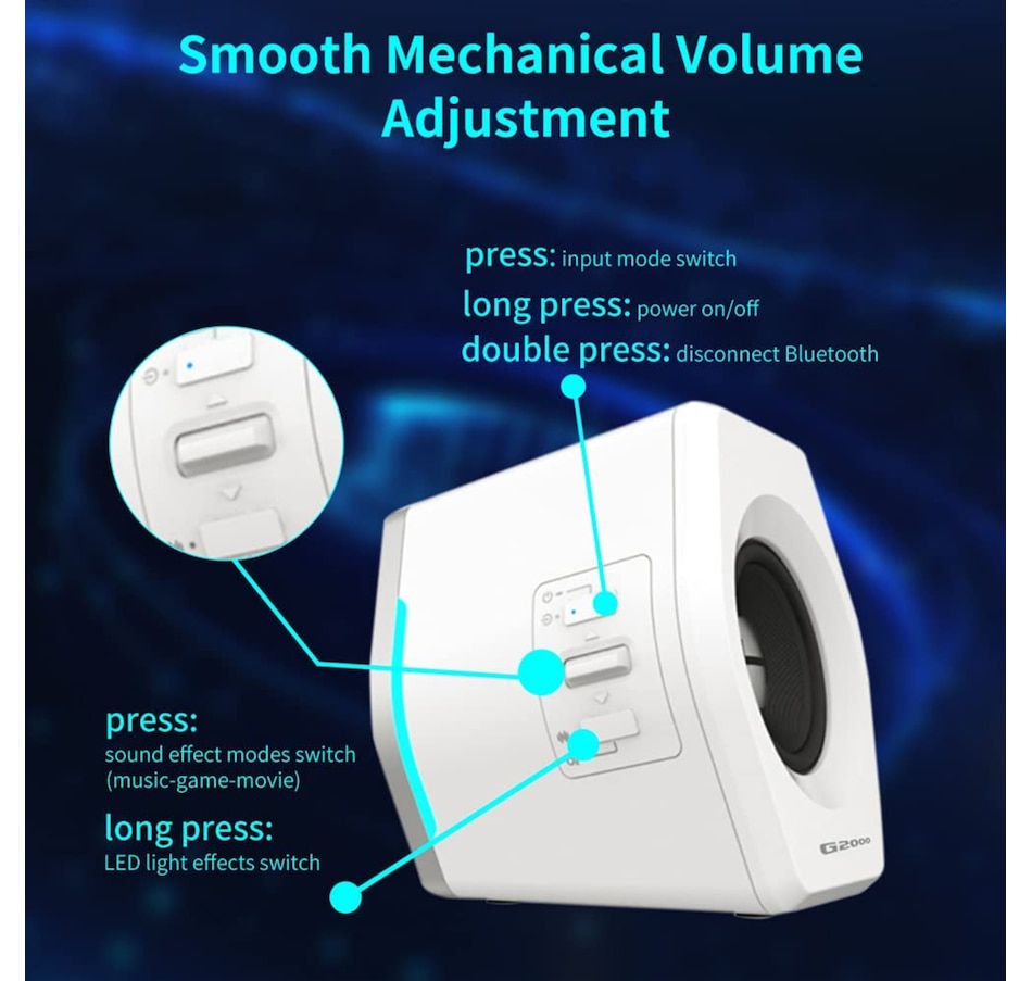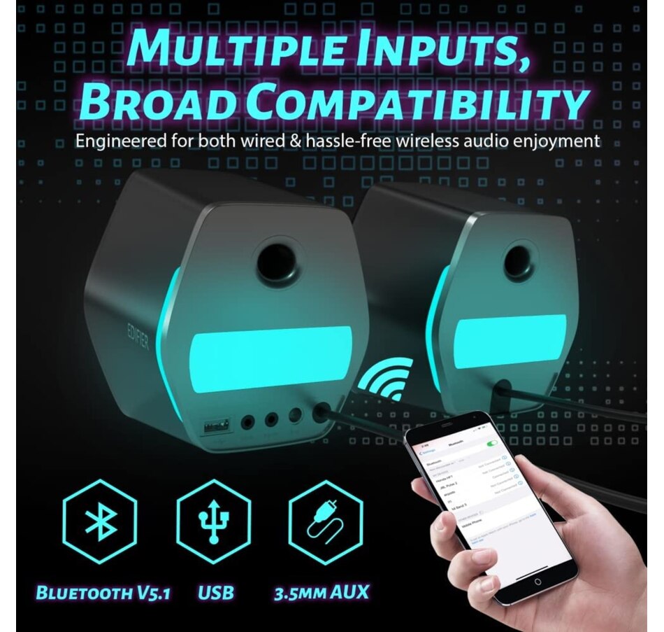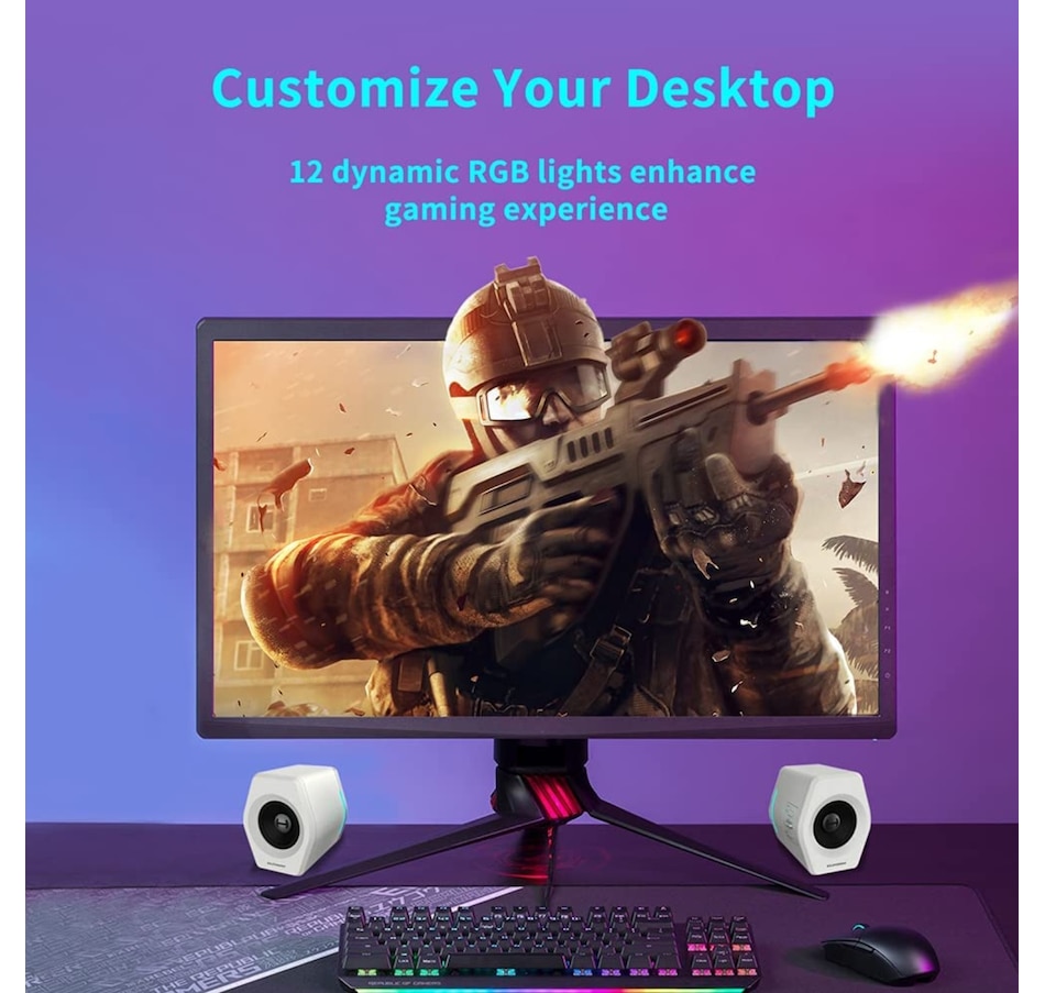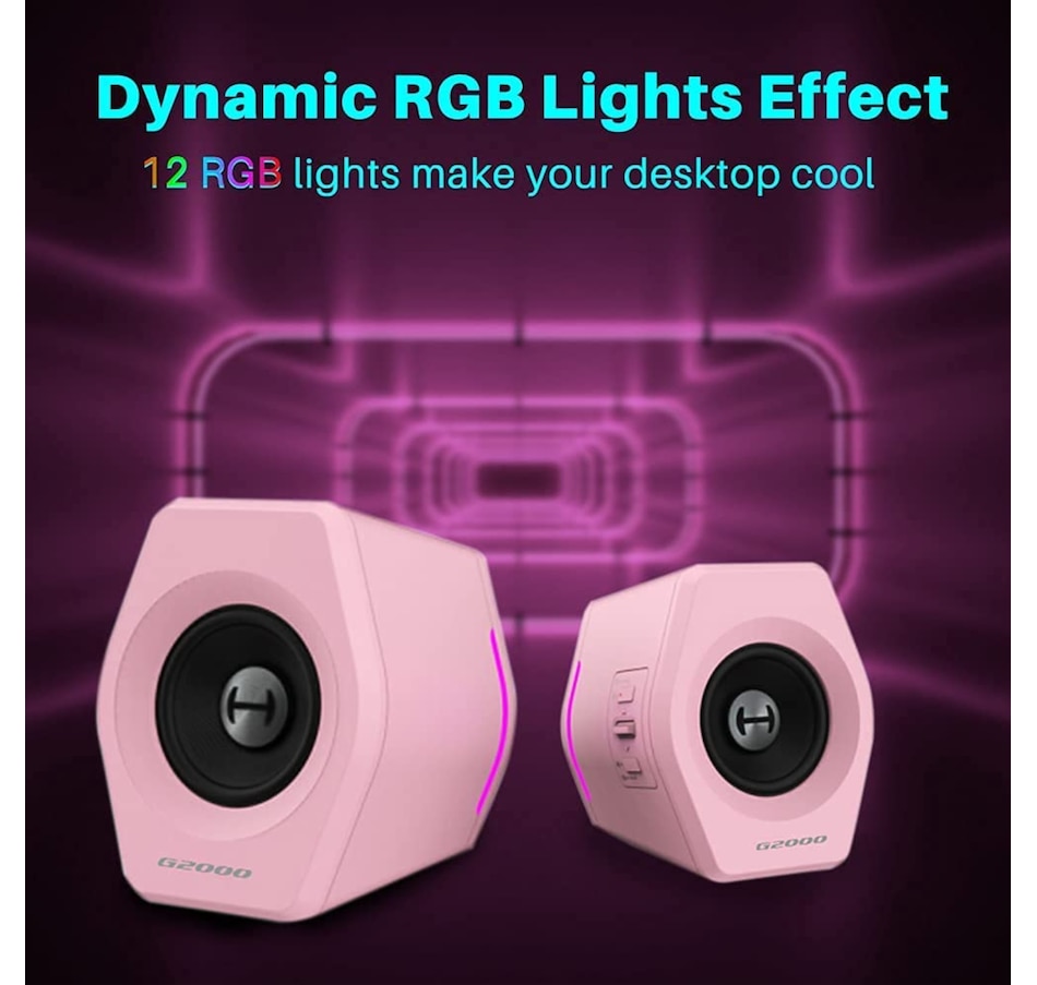 The Edifier Hecate G2000 Gaming Computer Speakers boast a total peak power of 32W, ensuring a remarkable audio experience. Customize your sound with EQ adjustments available in Game, Music, and Movie modes. Elevate your gaming immersion further with 12 mesmerizing RGB lighting effects.