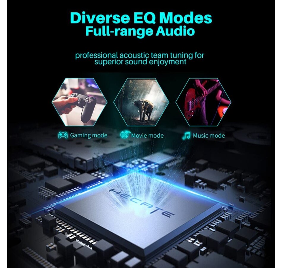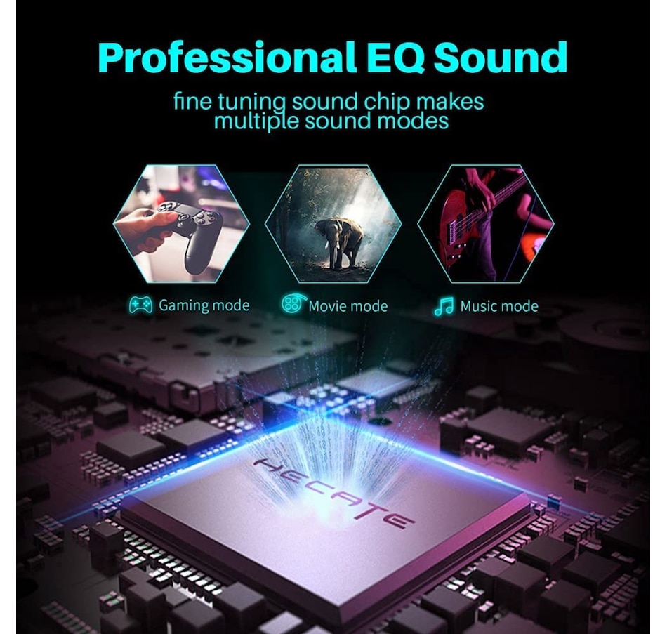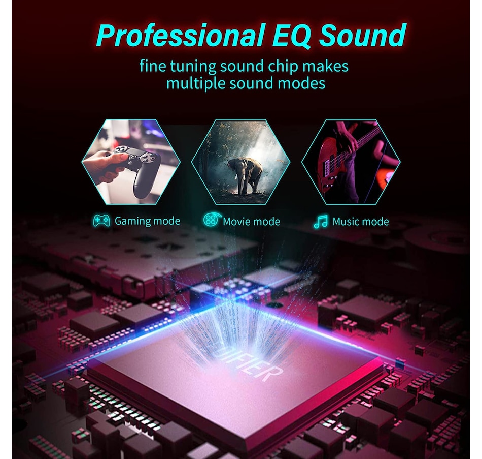 • Professional acoustic-team tuning and EQ adjustment with Game, Music, and Movie modes for exceptional sound effects