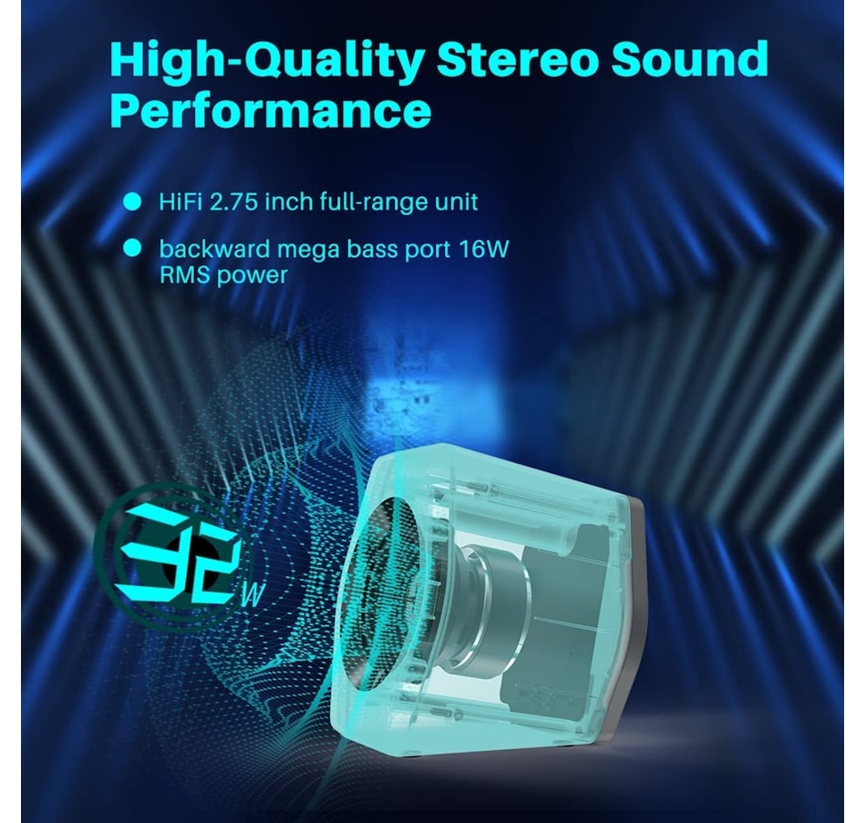 • Powerful 16W RMS power and a total peak power of 32W for an immersive sound experience