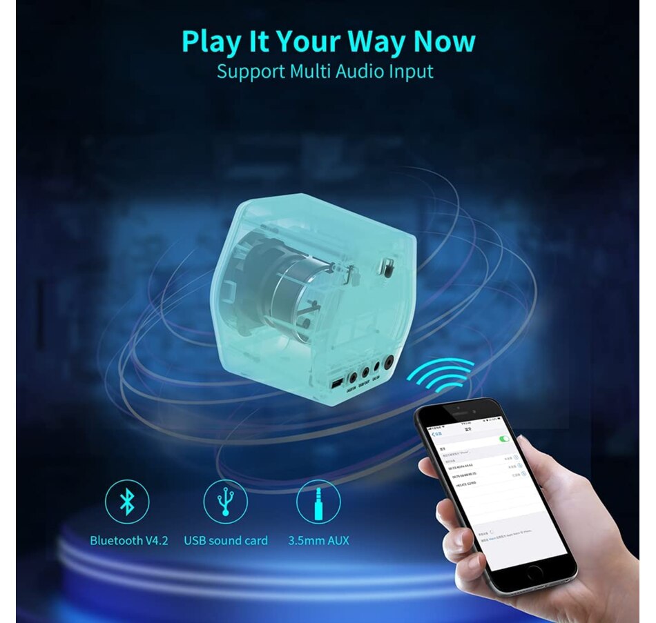 • Versatile compatibility with 3.5mm AUX, Bluetooth, and USB sound card inputs, making it compatible with various devices
