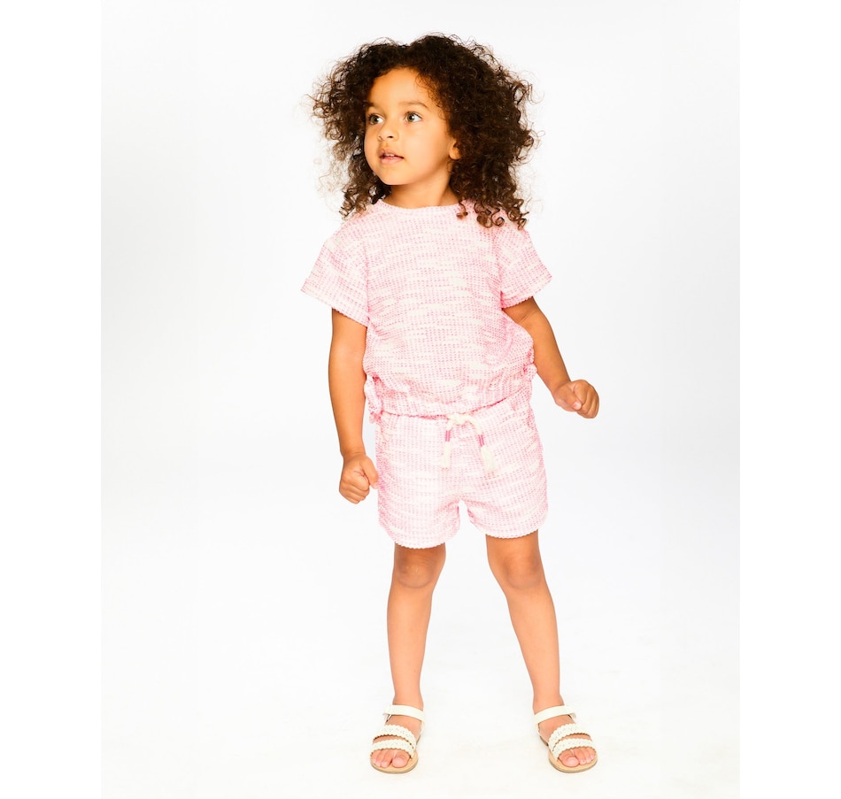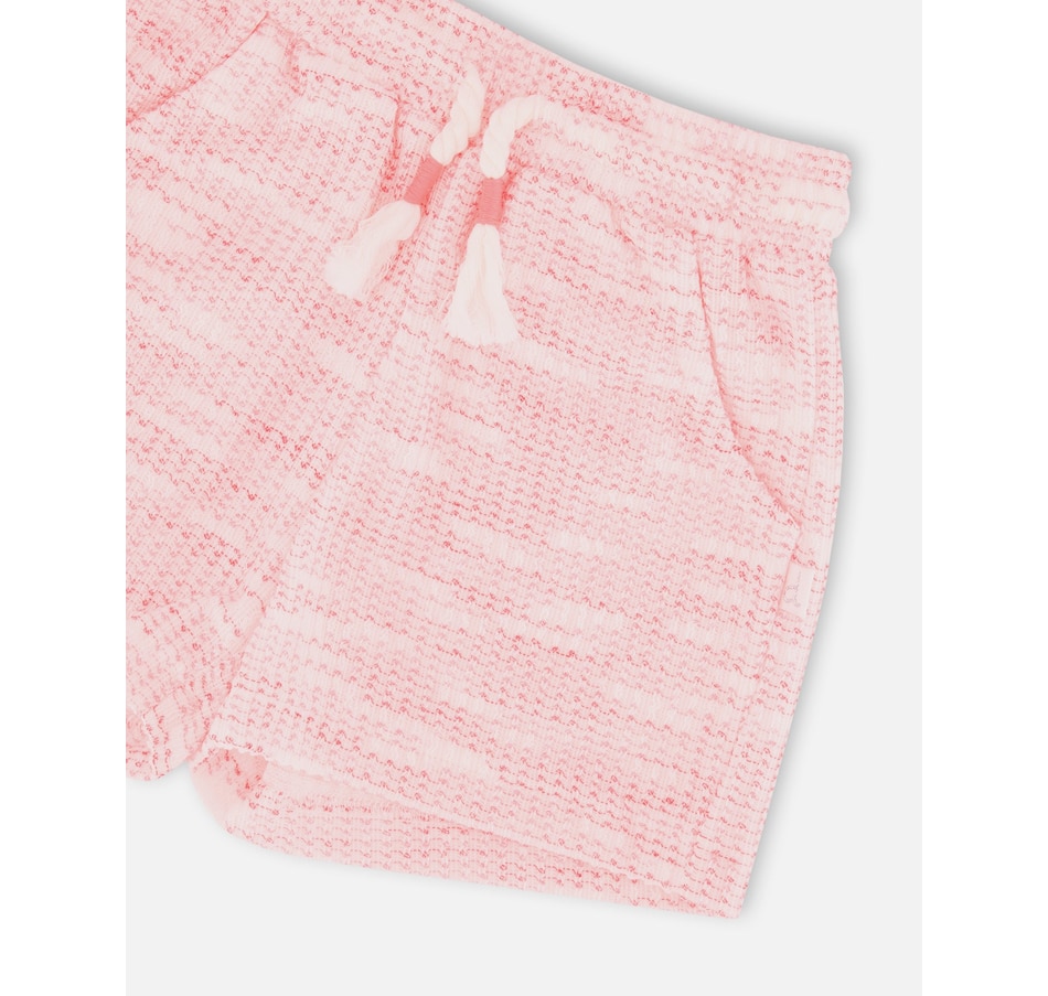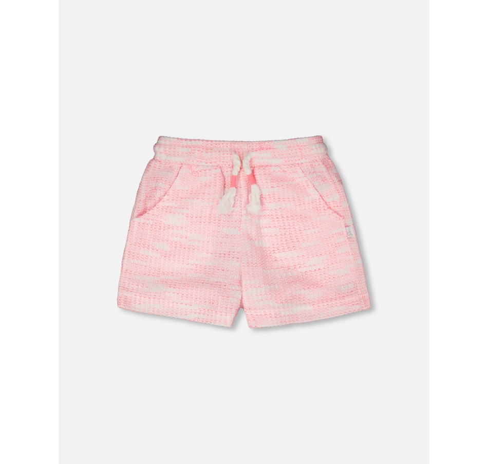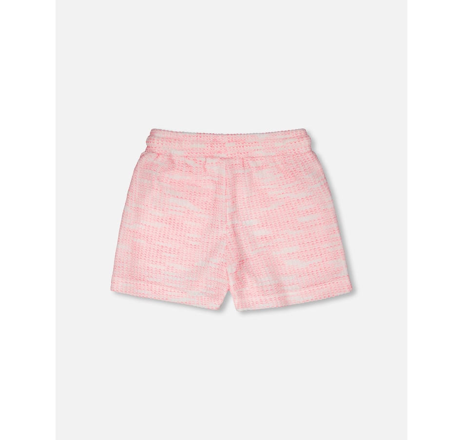 The multicolored jacquard knit shorts mix texture and fun in a playful everyday look. These bottoms feature a relaxed fit, an elastic waistband with drawstring, and two slant pockets for a touch of practicality. Made from soft jacquard knit with gentle stretch, they offer both comfort and cheerful style for girls on the move.