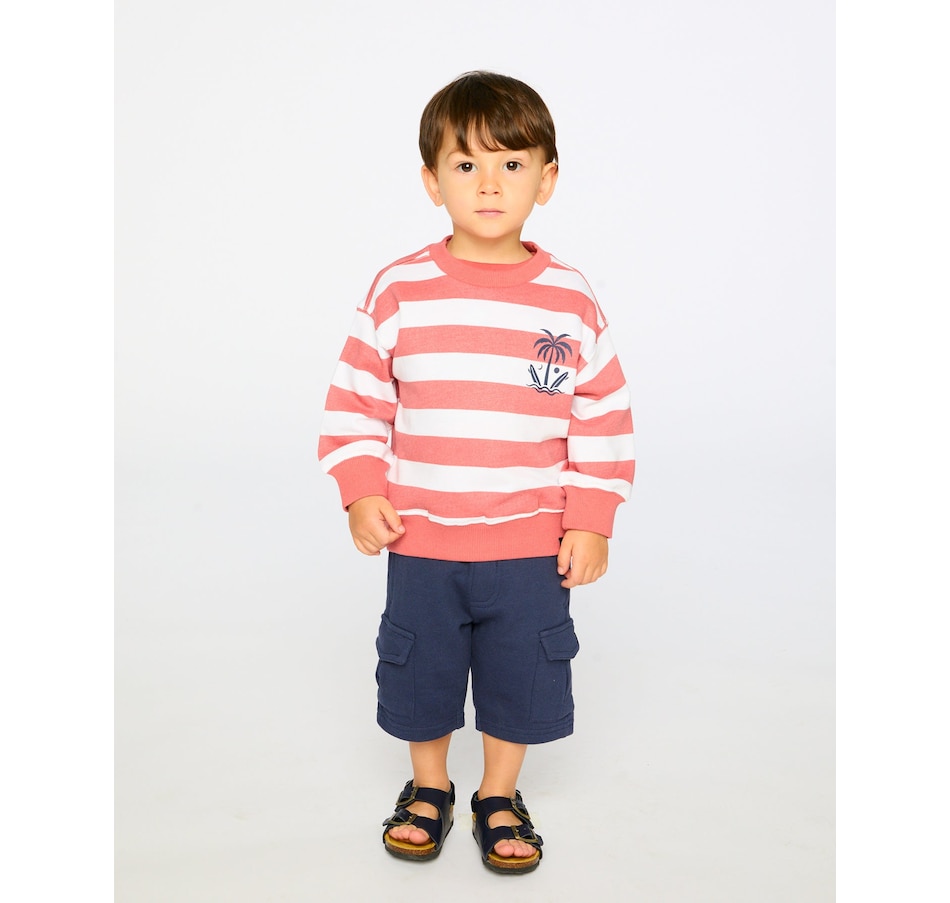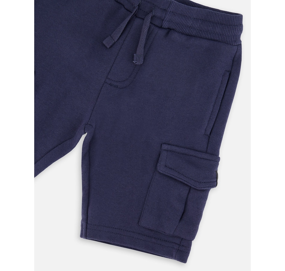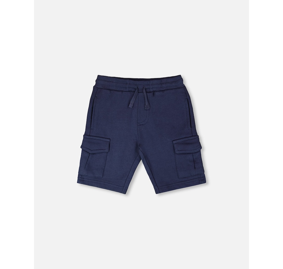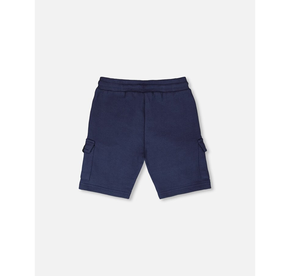 The French terry shorts are a comfy yet practical summer essential for boys. These bottoms are designed with an elastic waistband for easy pull-on wear, slit side pockets, and functional cargo pockets for a casual utility look. Made from soft cotton-blend French terry, they are perfect for play and everyday adventures in the “Coastal Days” collection.