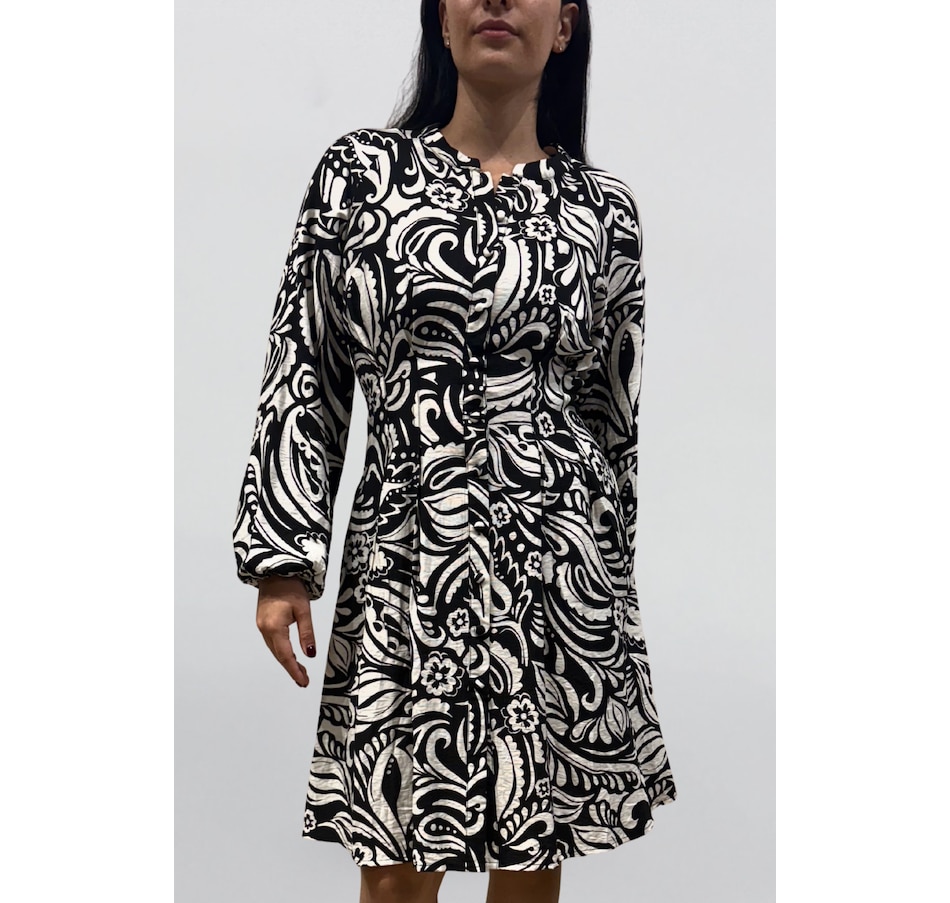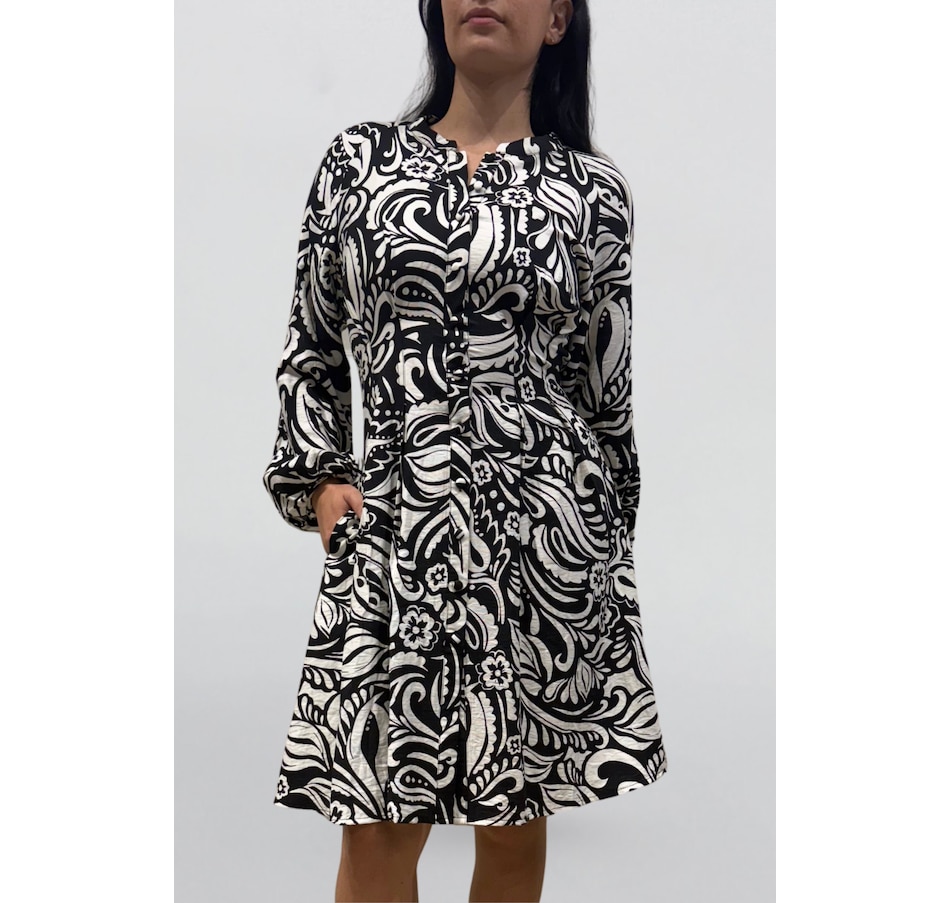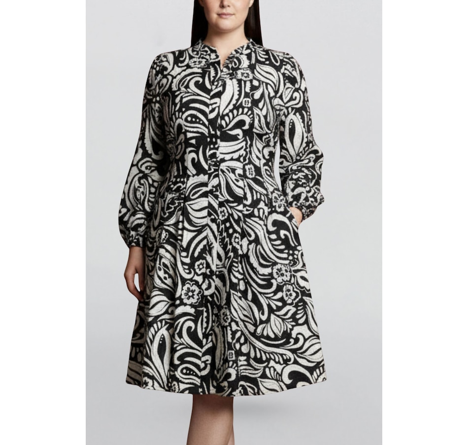 The Eleanor dress is a timeless statement piece, featuring an elegant black and white abstract print that adds artistic flair to your wardrobe. Designed with a classic silhouette and long sleeves, this dress blends structure with softness for effortless day-to-night style. Whether worn with boots or layered with a blazer, Eleanor delivers polished comfort with standout visual appeal.