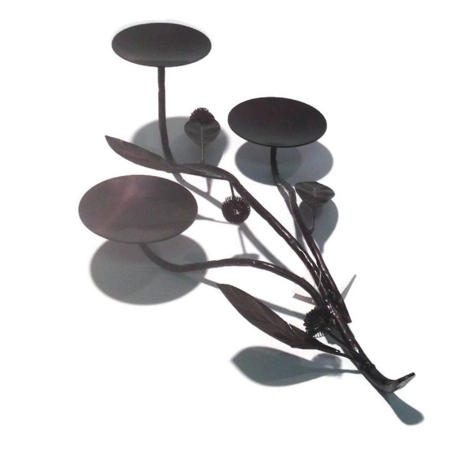Make a sophisticated statement in your home or office with this candle holder! A beautiful design adds interest and whimsy, making this candle holder the perfect accent for your entryway table, sofa table, or mantel! Just add three of your favorite candles for a completely custom look.Type: Candle Holders, Pillar.Material: Metal.Color: Black.A beautiful home decor piece