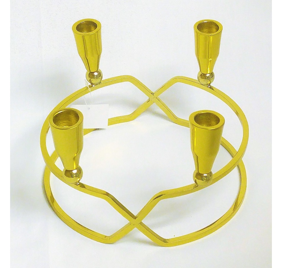 A 4-light candelabra fashioned out of the finest metal. This not only adds to the decor, but gives off a classy look to any room. Its shiny color goes along with any decor theme or style.Bring Hotel Luxury home.A beautiful home decor piece.Perfect for casual summertime meals or more festive dinner parties.Perfect for casual summertime meals or more festive dinner parties