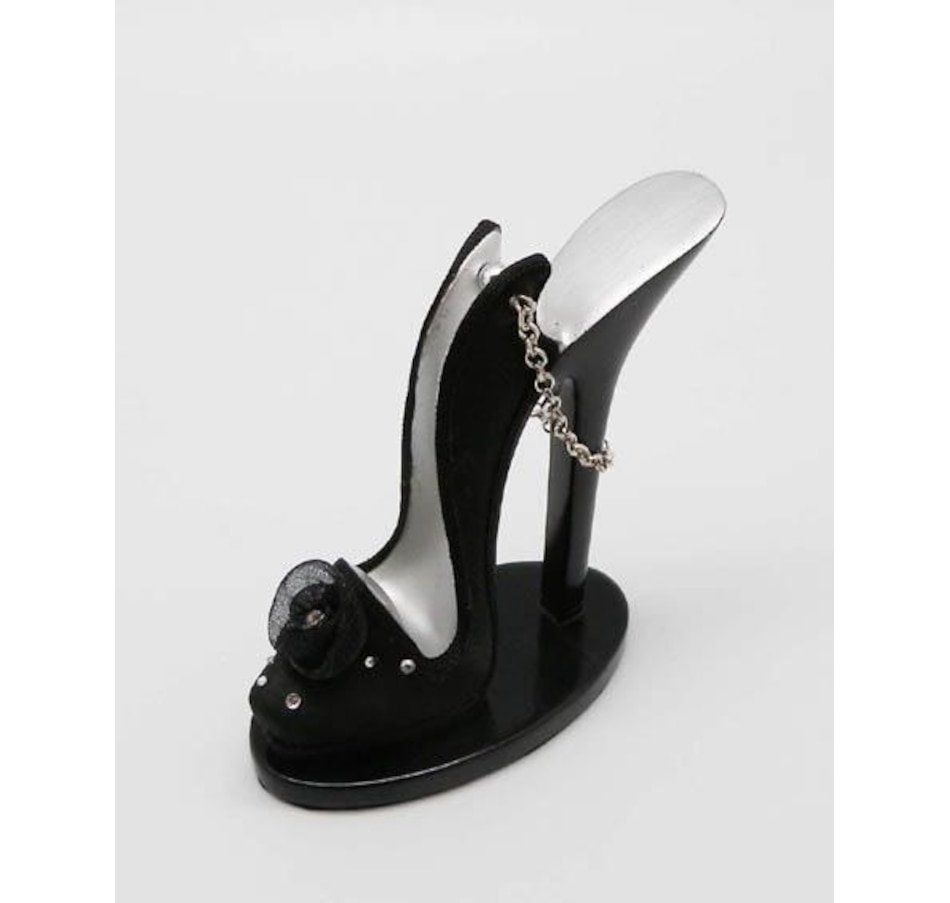 Taking the sleek shape of a stiletto heel, these glamorous statuettes serve as unique eyeglass holders. The heel of each shoe safely cradles spectacles, while the curved sides create a snug spot for business cards. Made with quality materials. Eye Glasses Holder. Great addition to your vanity.
