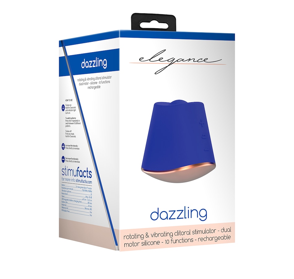 The DAZZLING is CE Certified, made from 100% silky smooth medical grade silicone, waterproof (IP67) and extremely quiet at under 60dB. It contains a rechargeable battery that when fully charged with its magnetic USB cable will provide a full 60 minutes of passionate playtime.