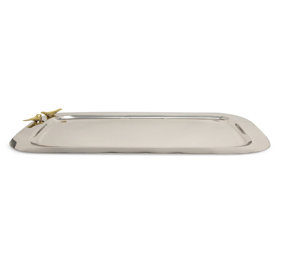 Elegance has been known for elegant design at accessible prices. From home to hotel and everywhere in between, Elegance has made high end products. Perfect for serving food or just use as a beautiful home decor piece. The Love Bird Collection design is cute and elegant. Perfect item to display cupcakes, troufles - also great as a jewellery tray.Nicked Plated Brass.Wipe Clean.Luxury brand.Quality material