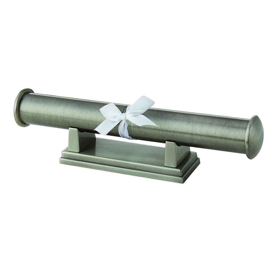 Pewter finish certificate holder with stand. Perfect for storage of wedding and/or birth certificate, as well as graduate diploma. Marriage certificate holder Secure storage Storage cylinder