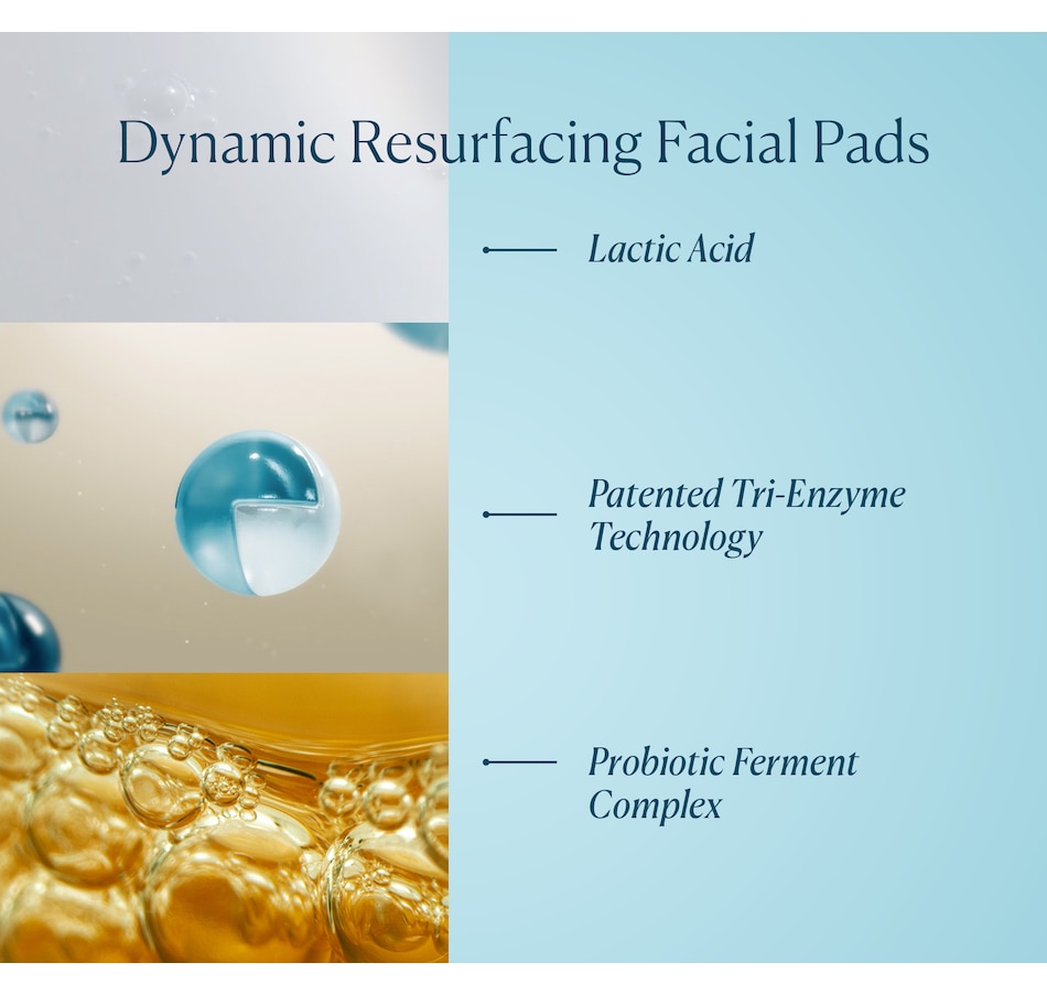 The bestselling Dynamic Resurfacing Facial Pads gently yet effectively lift away dead cells and accelerate the skin’s natural cell turnover in just 28 days**. These pads include a mild AHA to smooth skin without stripping it of essential moisture.