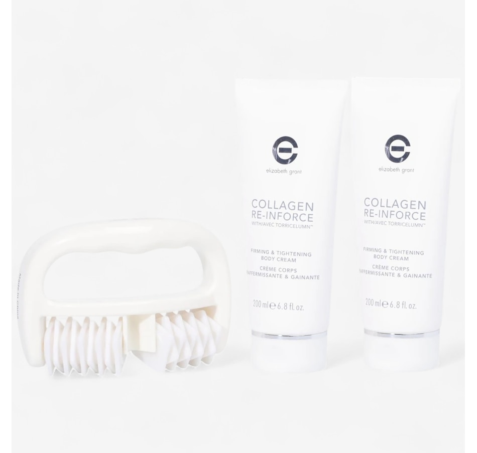 Body slackening, dimpled thighs and arms, stretch marks and the orange peel look affect over 80% of all women regardless of age or weight. Elizabeth Grant’s Collagen Firming and Tightening body collection is a solution to this problem that most women endure. A two step body contouring system to help visibly firm, tighten skin and smooth the appearance of dimpled skin. The body cream contain plant extracts that work on instantly tightening and smoothing the surface of the skin and Torricelumn™, collagen, caffeine and botanicals to help visibly lift and firm the appearance of slackened skin.