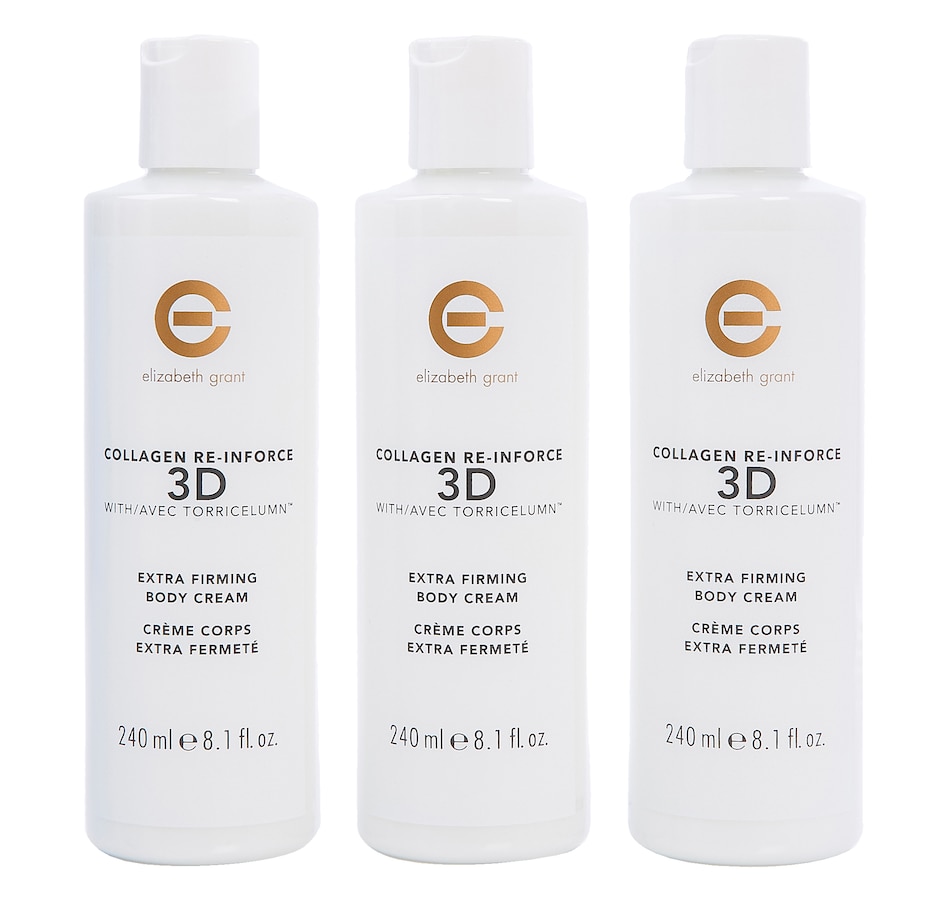 • (3) Elizabeth Grant Collagen Re-Inforce 3D Extra Firming Body Cream (240 ml)—valued at $35.00 each