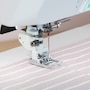 The new Elna eXcellence 710 offers a very large sewing area and a host of helpful functions and impressive features. This model is equipped with a dual feed system that evenly moves your fabric from top and from bottom with amazing precision. It guides multiple layers in perfect synchronization and enables precise matching of stripes and patterns!