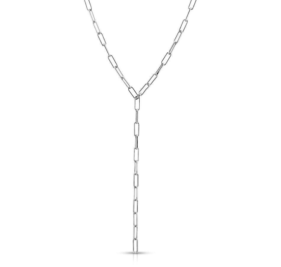 Elongated Link Lariat (Y Necklace) is recycled brass plated 14K GoldChain has a protective coating to prevent from tarnishing.Chain Links measure 3.6mm wide x 10mm longMeasures 23" around the neck with a 9.75" DropLariat Necklaces are Handmade in the USA