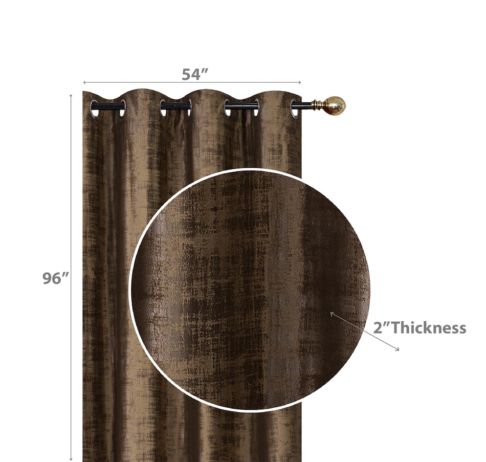 Ideal for your living room, bedroom, and dining room, this 96” wide velvet curtain is soft to the touch and comes in a chocolate color. Perfect for draping your windows, it offers you the privacy you need. Made of velvet, the color and quality of it will remain the same even after multiple washes. Offering easy care and maintenance, this velvet blackout curtain comes with rubber panel grommets that make it hang to hang on windows and doors. Design: Chocolate Velvet With Embossed Rubber Panel W Grommets Material: Velvet Dimension: 54 L × 96 W × 2 H Inches Use: Ideal for home decoration Care Tip: Machine washable