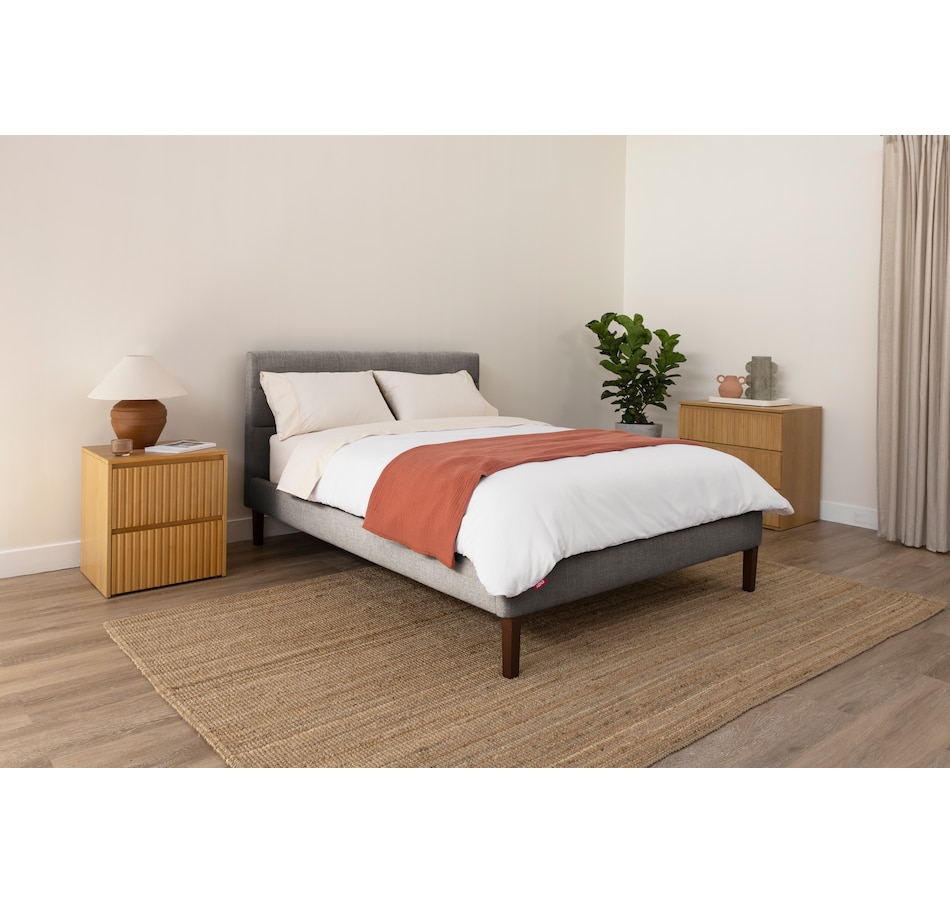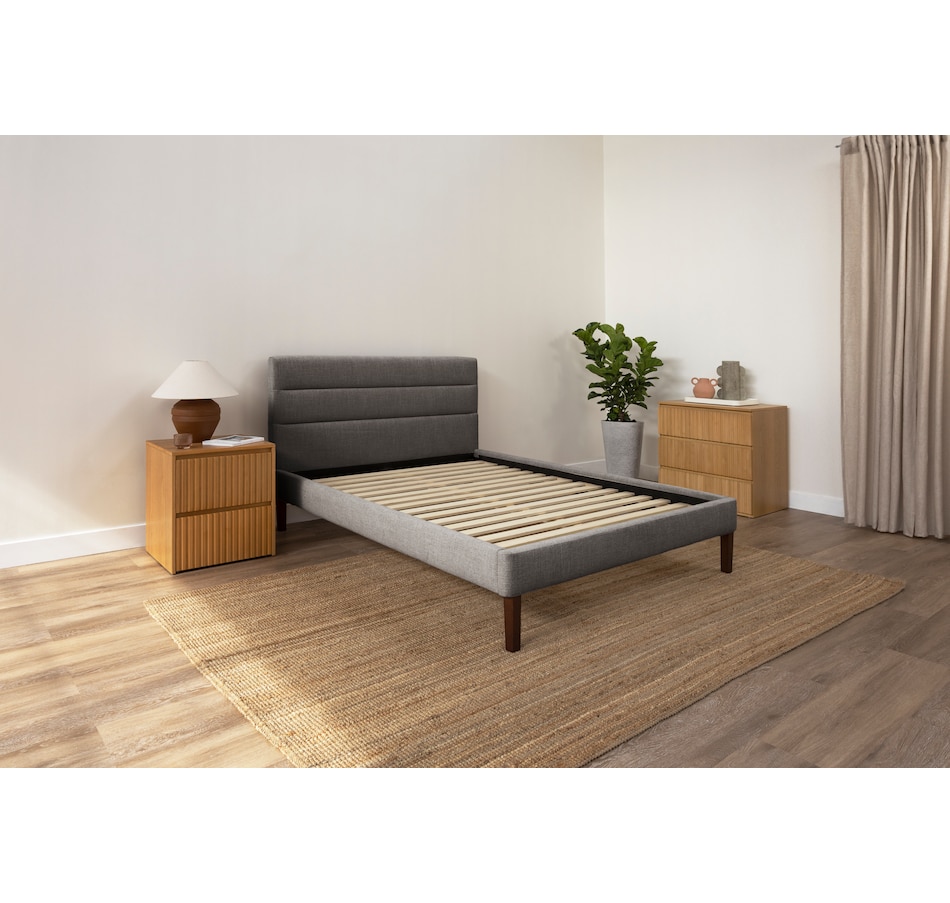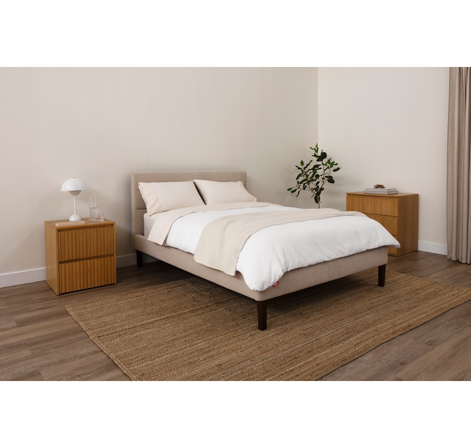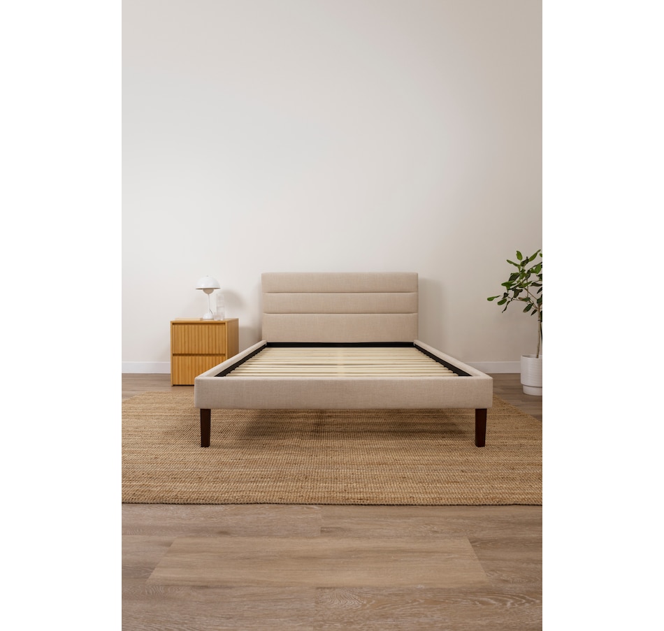 This upholstered bed from Endy features a sleek horizontal headboard, soft upholstery in versatile colours, and a frame that feels as solid as it looks. It offers clean, modern lines that fit effortlessly into any space, plus a solid wood frame and sturdy legs built for everyday durability. And with more clearance underneath than most, this bed is as practical as it is stylish.