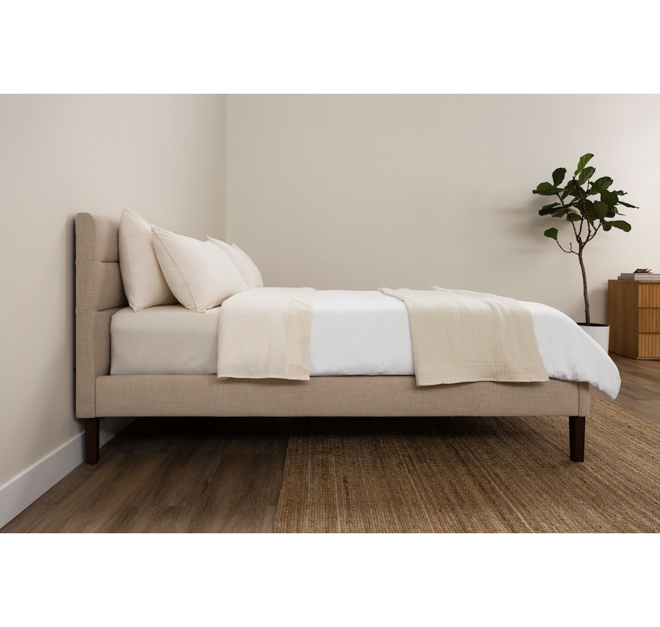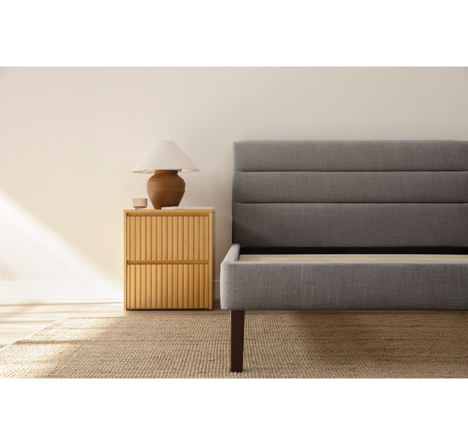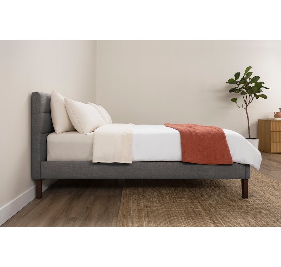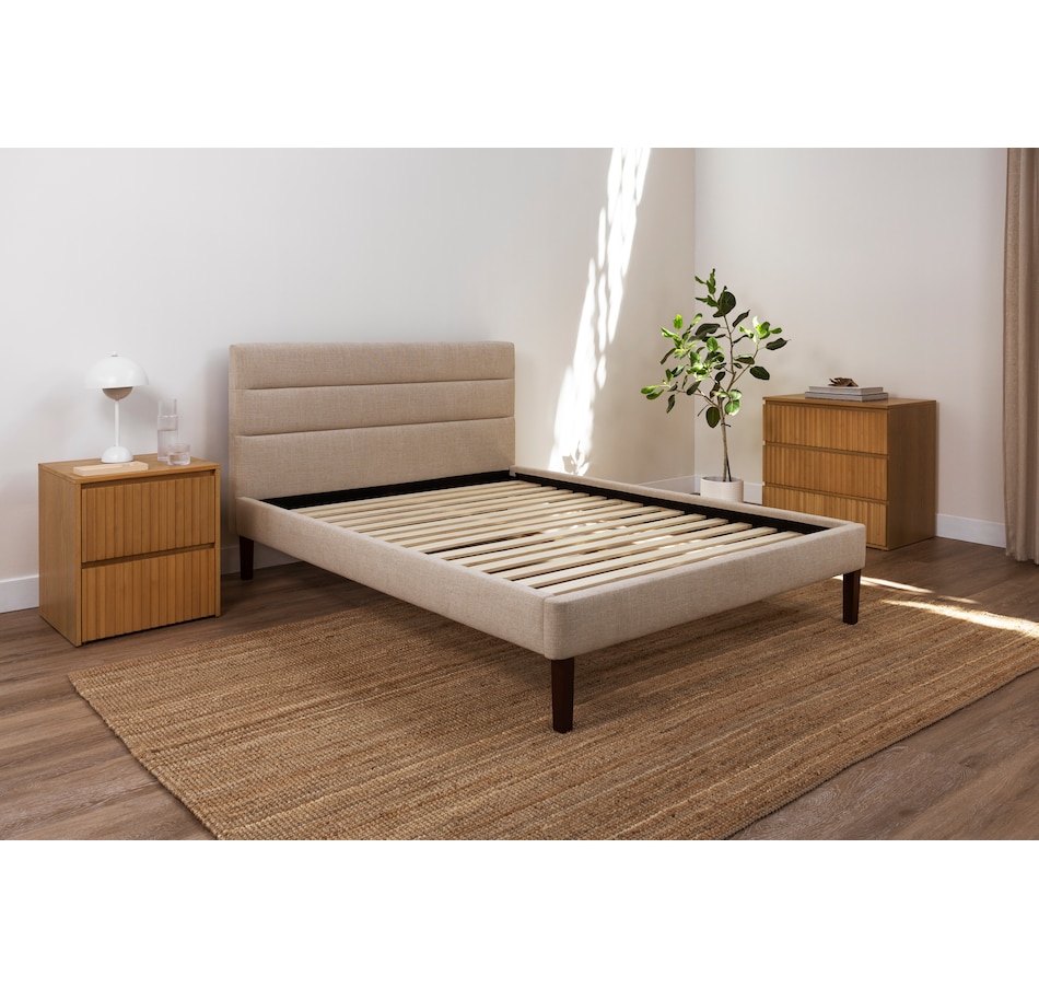 This upholstered bed from Endy features a sleek horizontal headboard, soft upholstery in versatile colours, and a frame that feels as solid as it looks. It offers clean, modern lines that fit effortlessly into any space, plus a solid wood frame and sturdy legs built for everyday durability. And with more clearance underneath than most, this bed is as practical as it is stylish.