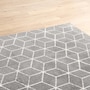 This contemporary, tight-weave, grey geometric rug features a medium pile height and is both durable and easy to clean. It adds warmth to your space and feels soft underfoot while protecting the floors in your home. Make a statement with a bold pattern and a colour palette that complements any aesthetic!