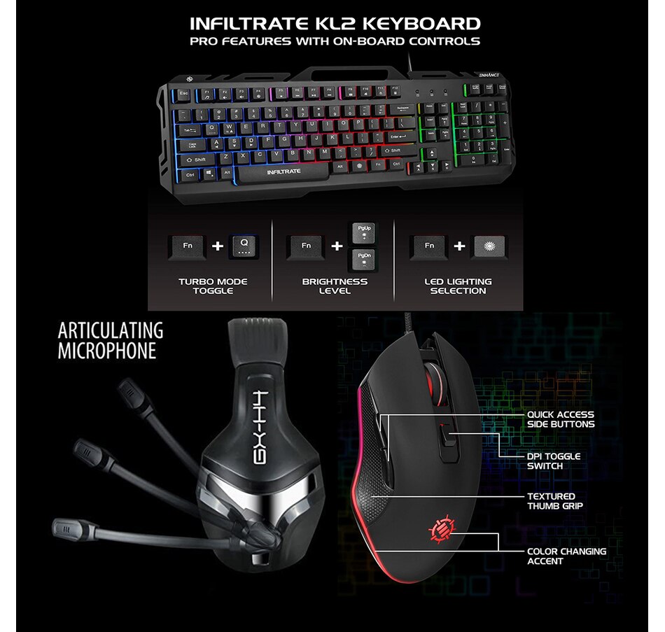 • Enhance 3-in-1 Gaming Bundle (headset, keyboard, mouse)
