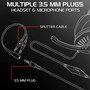 • Included splitter cable splits the 3.5 mm headset/microphone port into two 3.5-mm plugs, one for headphones and one for a microphone