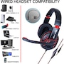 • Gaming headset for the PS4, PS5, Xbox, PC, and Nintendo Switch with adjustable headband, volume controller, USB sound-isolating earcups, and splitter cable