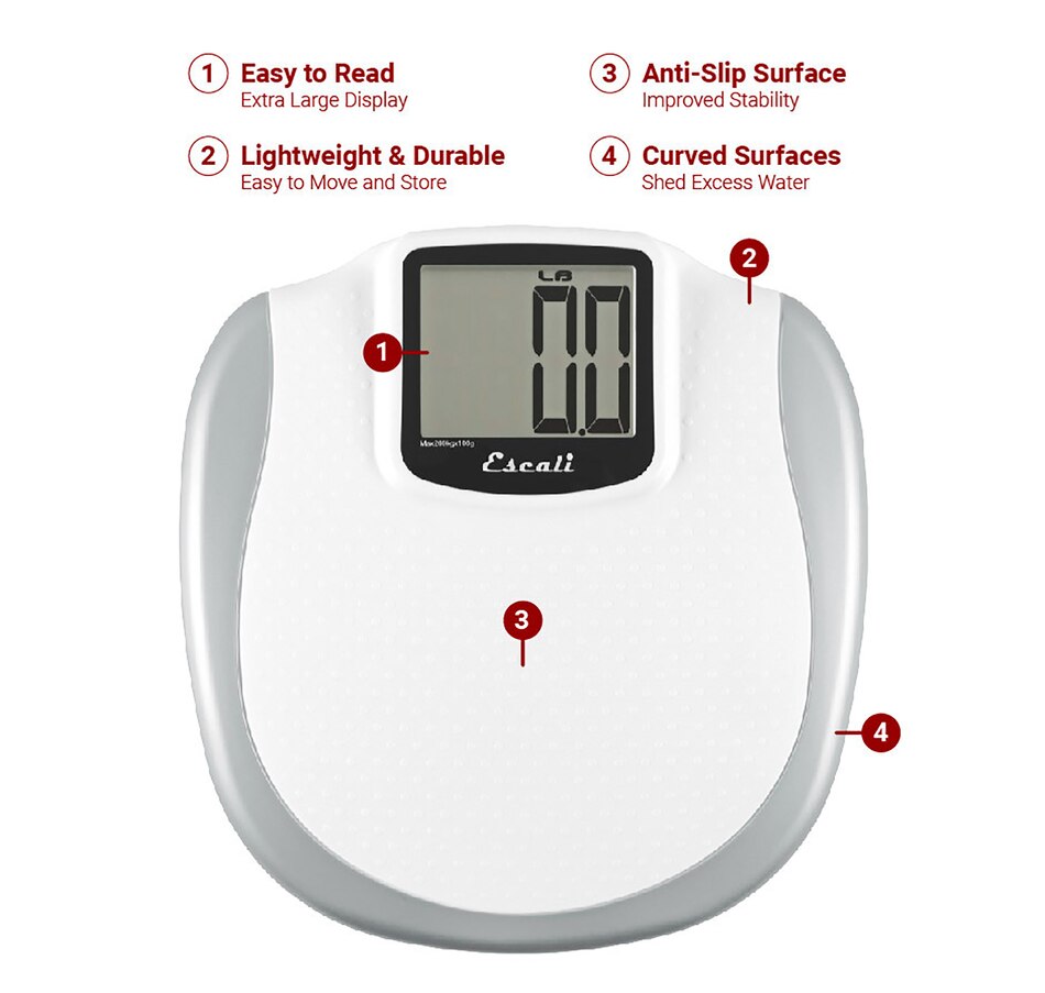 The extra-large display on this scale is easy-to-read for people with vision impairments and the non-slip design is durable as well as lightweight and portable. The convenient tap-on platform allows you to tap the top of the platform to turn on the scale. Once your weight is measured, the display continues to show the weight even after you step off the scale's platform.