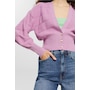 • Deep V-neckline, dropped shoulders, wide ribbed knit borders