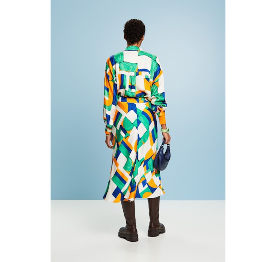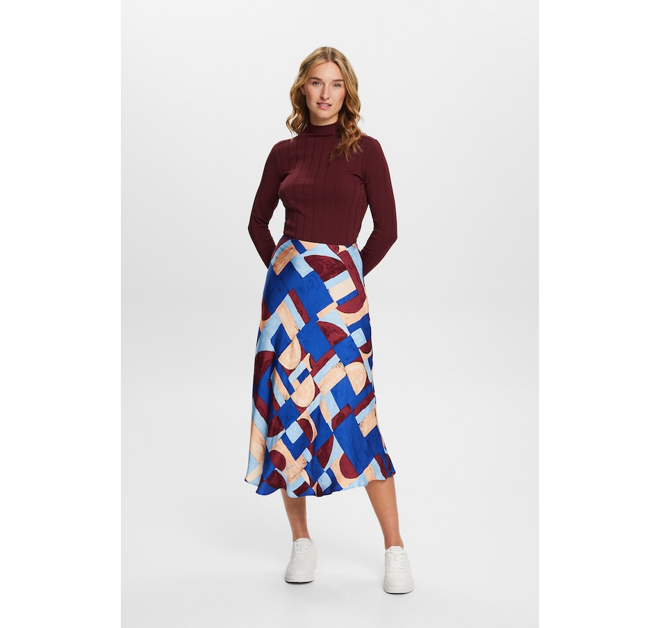 Crafted from smooth viscose fabric and featuring a geometric print all-over, this stylish midi skirt from Esprit can easily be dressed up or down depending on the occasion.