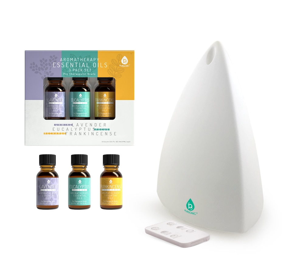 Introducing our Essential Oil Aroma Diffuser with 3 Pack Essential Oils – the ultimate home spa experience in one sleek and compact device. Elevate your space with calming aromas, purify the air you breathe, and create a serene ambiance effortlessly. Enhance your aromatherapy journey with our specially curated 3 Pack Essential Oils- Lavender, Eucalyptus & Frankincense. With user-friendly controls, you can easily adjust the mist intensity and set the diffuser on a timer, ensuring a customized and hassle-free experience according to your preferences. The soft LED lighting function adds a gentle and serene ambiance to any room, creating a tranquil atmosphere to unwind after a long day. Up to 6 hours of steady mist. 7 color changing LED lights. Remote control included. 100ml water tank. 3 Pack gift set of essential oils.