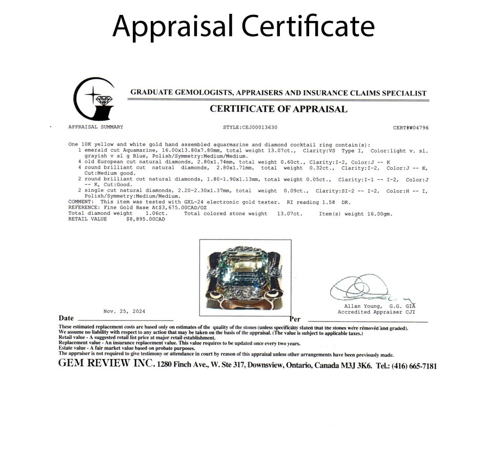 • (1) emerald-cut aquamarine (13.07 ctw)