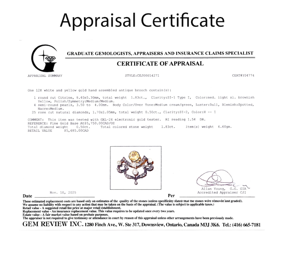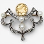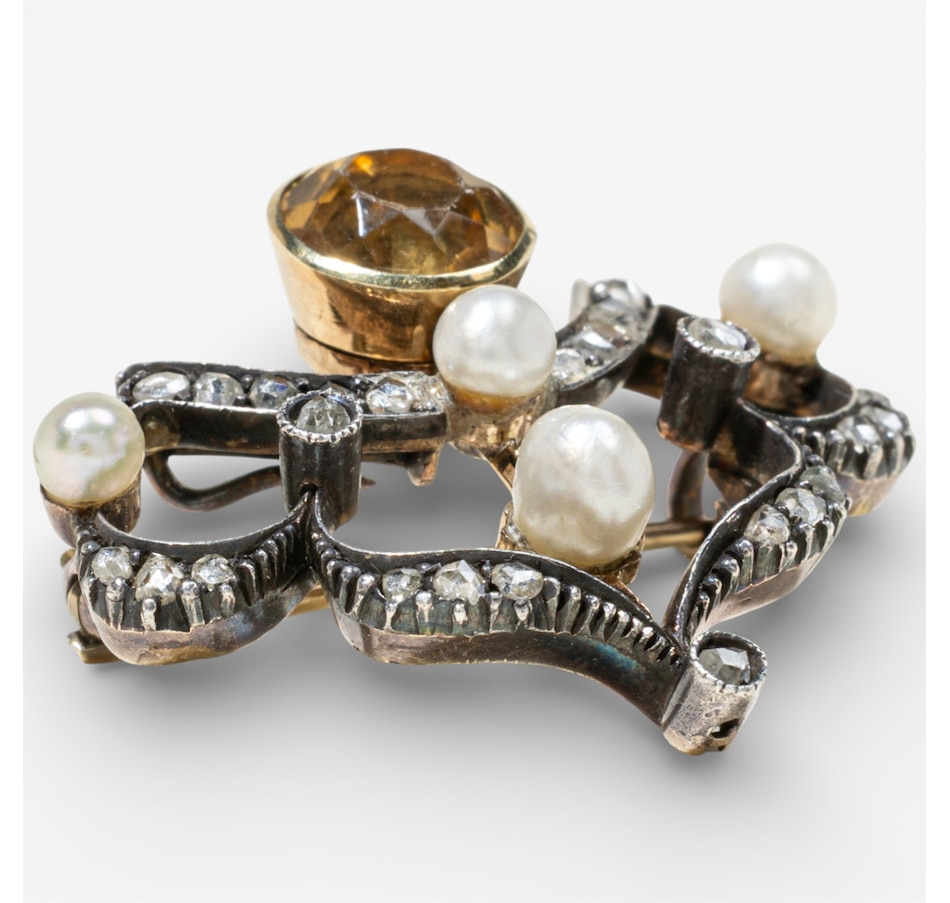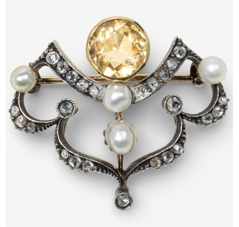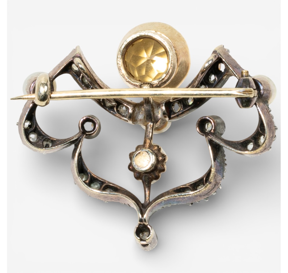 12K White and Yellow Gold Citrine, Pearl and Rose-Cut Diamond Brooch