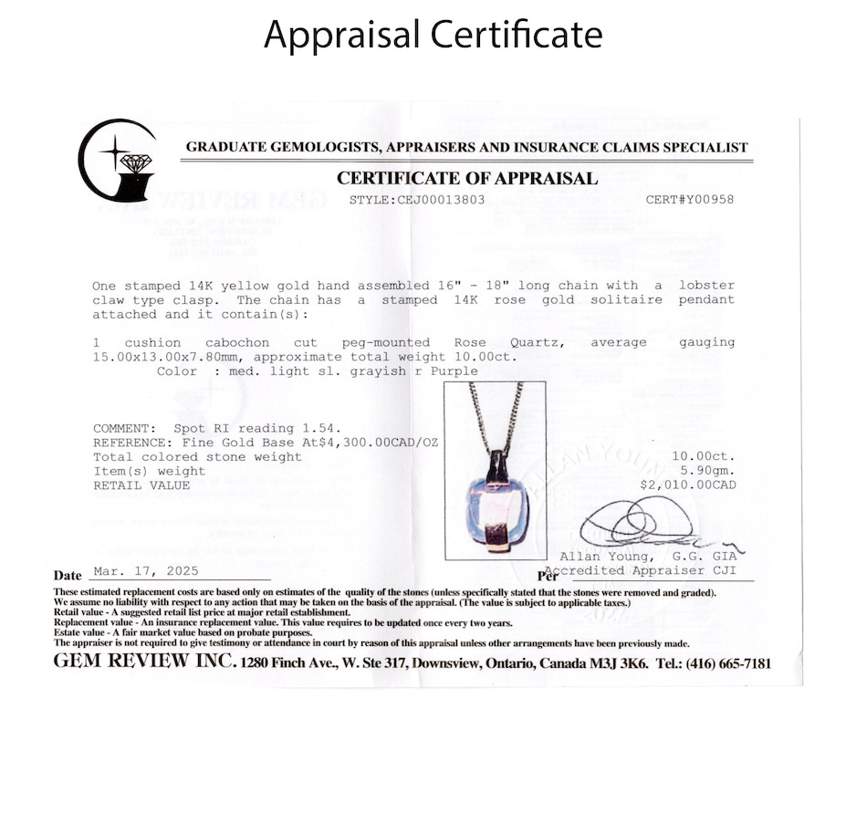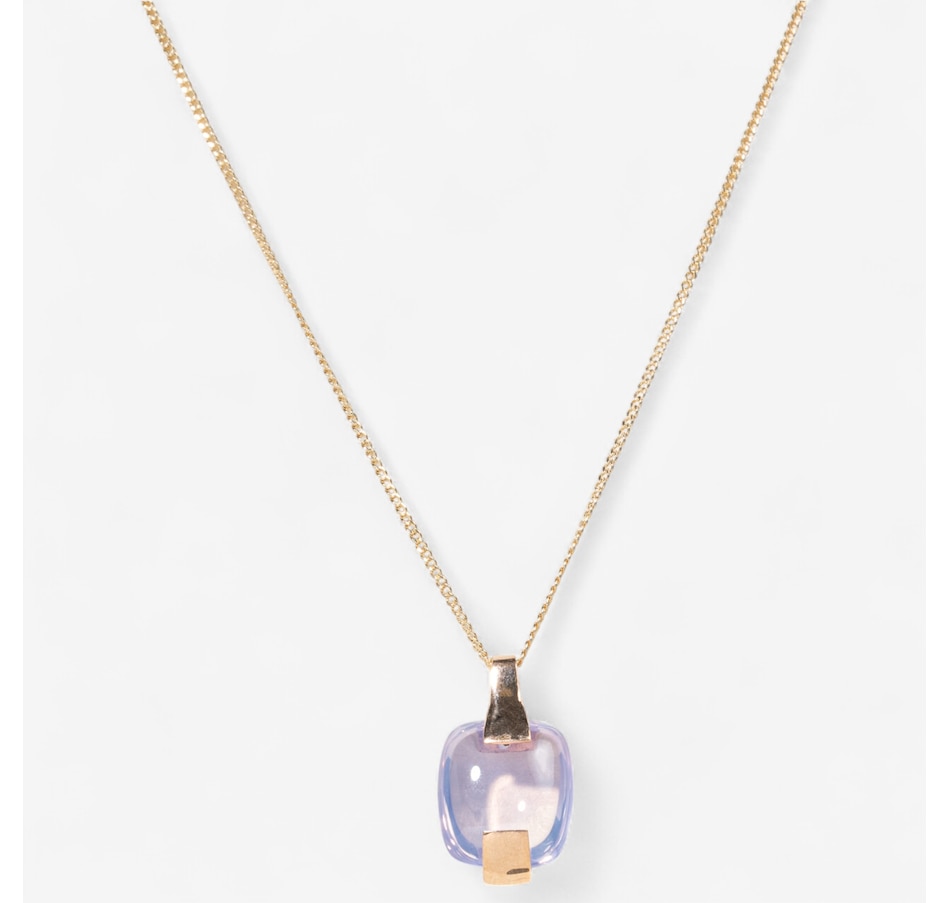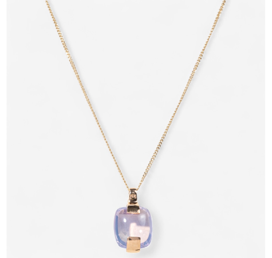 14K Rose Gold Cushion Shaped Cabochon Cut Rose Quartz Solitaire Pendant