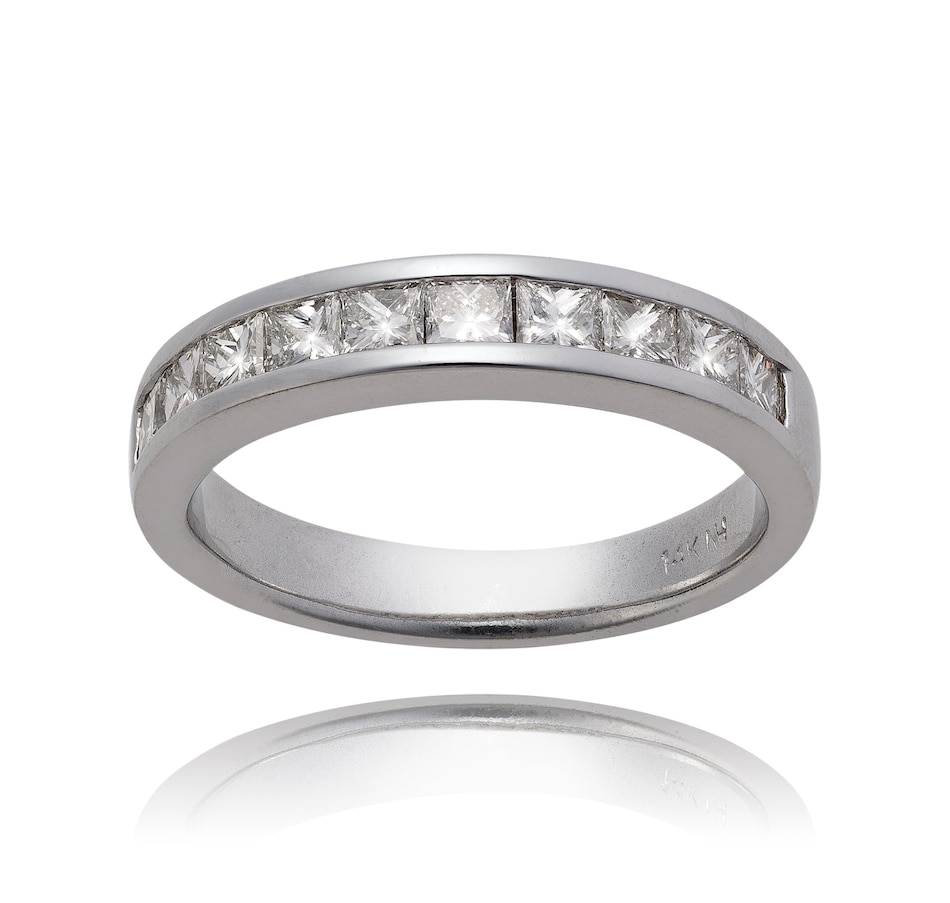 14K White Gold 1.00CTW Channel Set Princess Cut Diamond Half Eternity Band