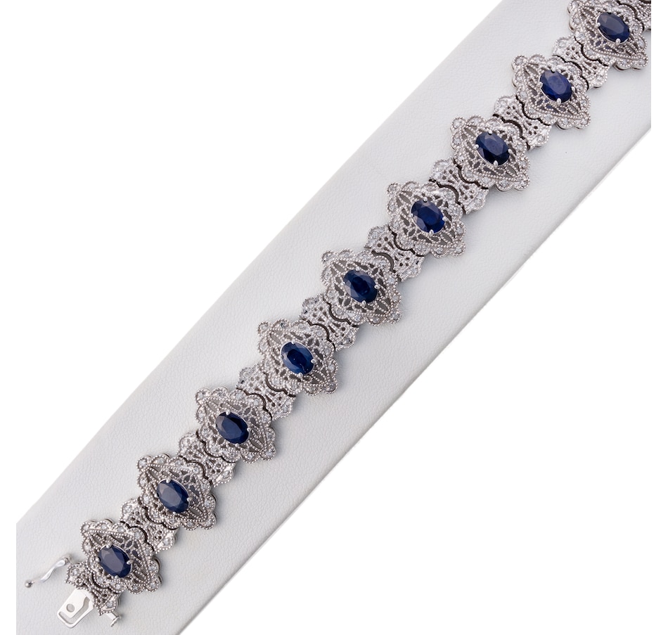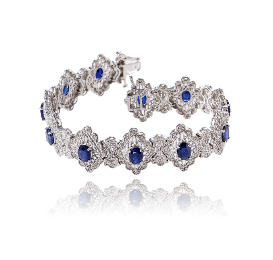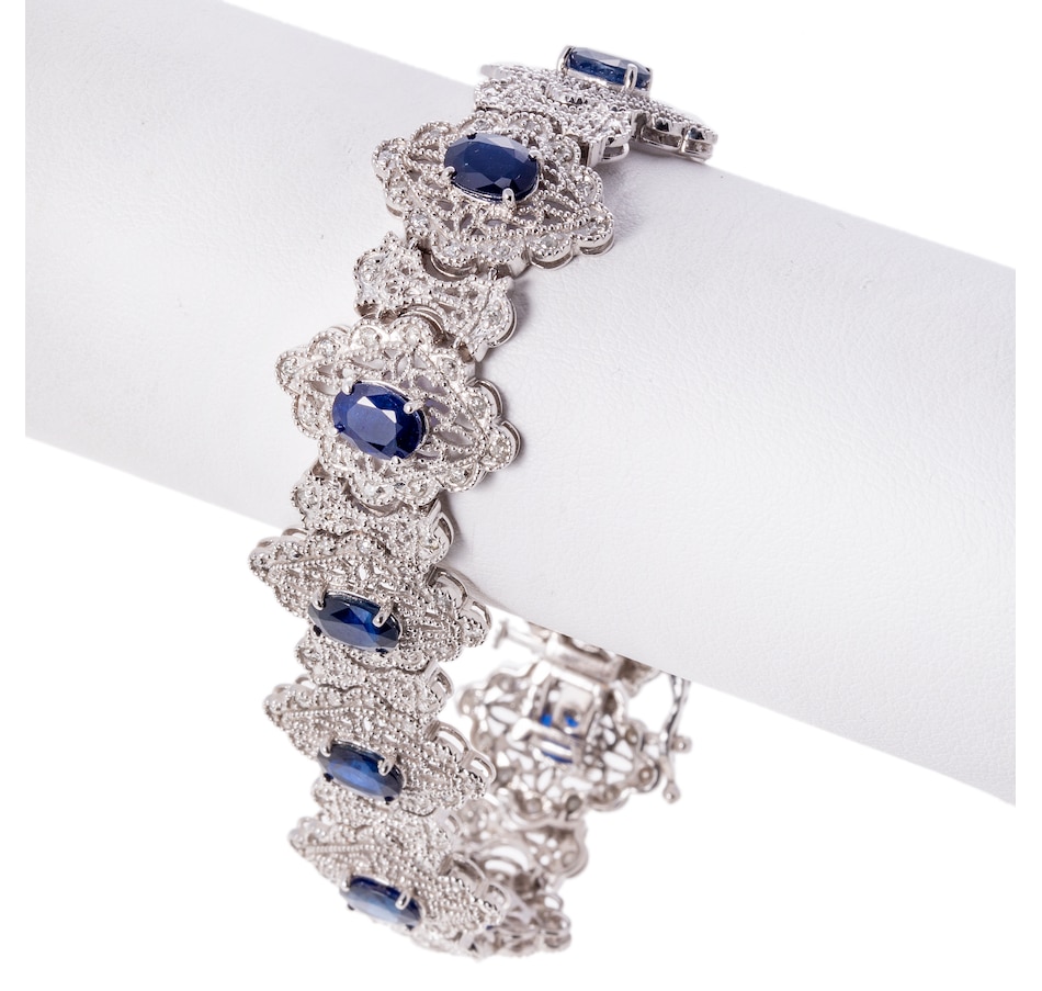 14K White Gold Fancy Link Sapphire and Diamond Filigree Bracelet