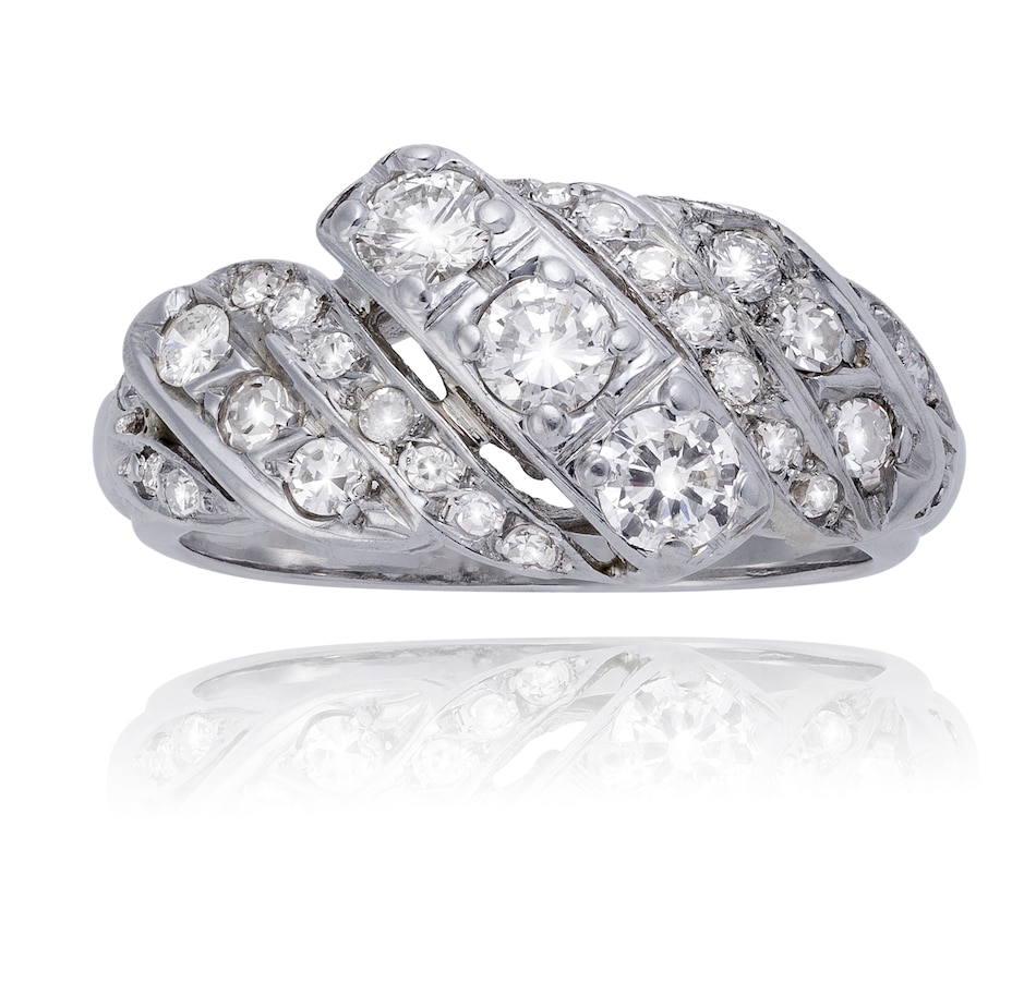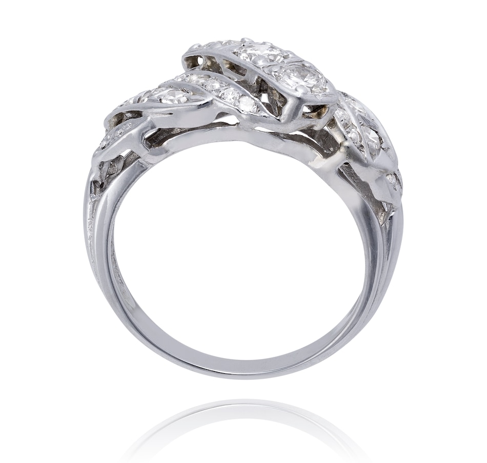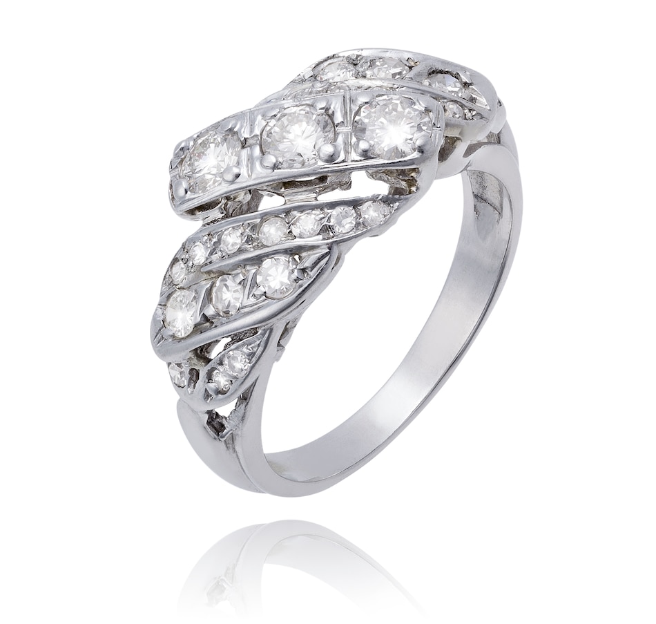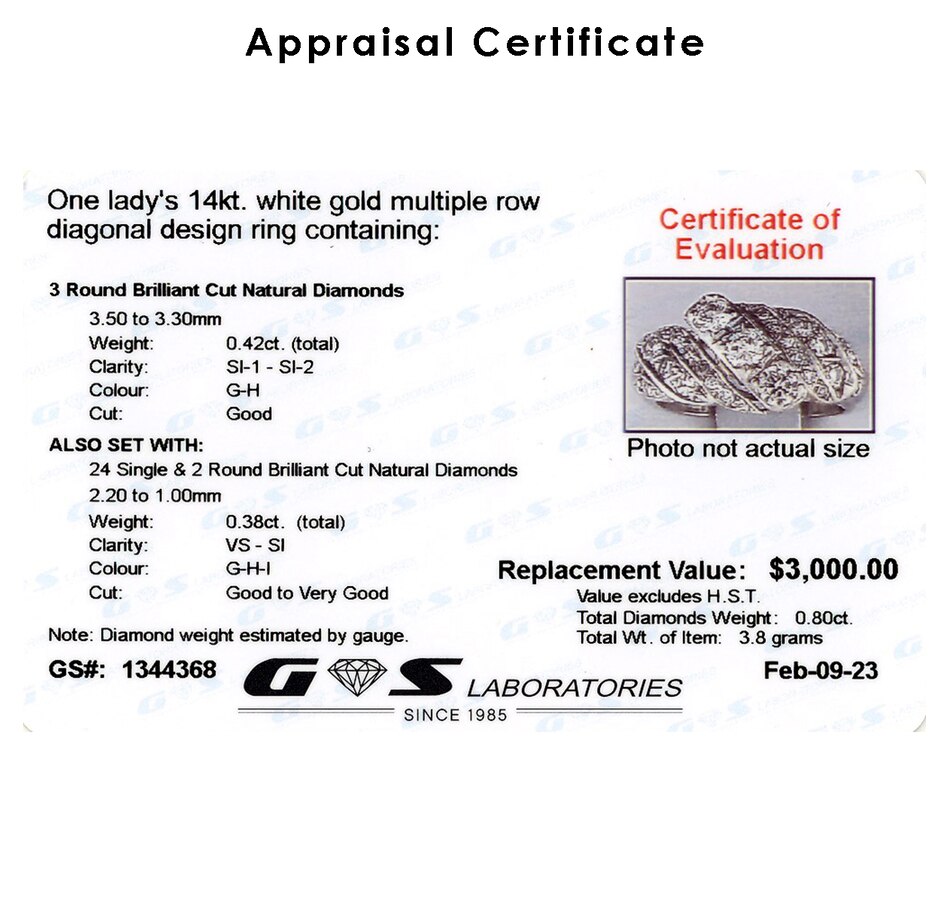 14K White Gold Multi-Row Diagonally Set Diamond Ring