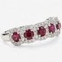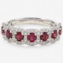 14K White Gold Ruby and Diamond 7-Across Cluster Ring