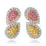 14K White and Yellow Gold Synthetic Pink and Yellow Sapphire Pear Shaped Earrings with Diamonds