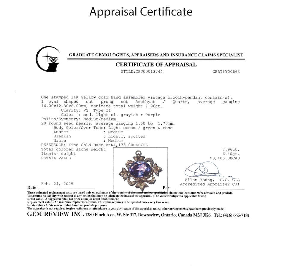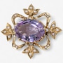 14K Yellow Gold 7.96 Carat Amethyst and Seed Pearl Pendant/Brooch